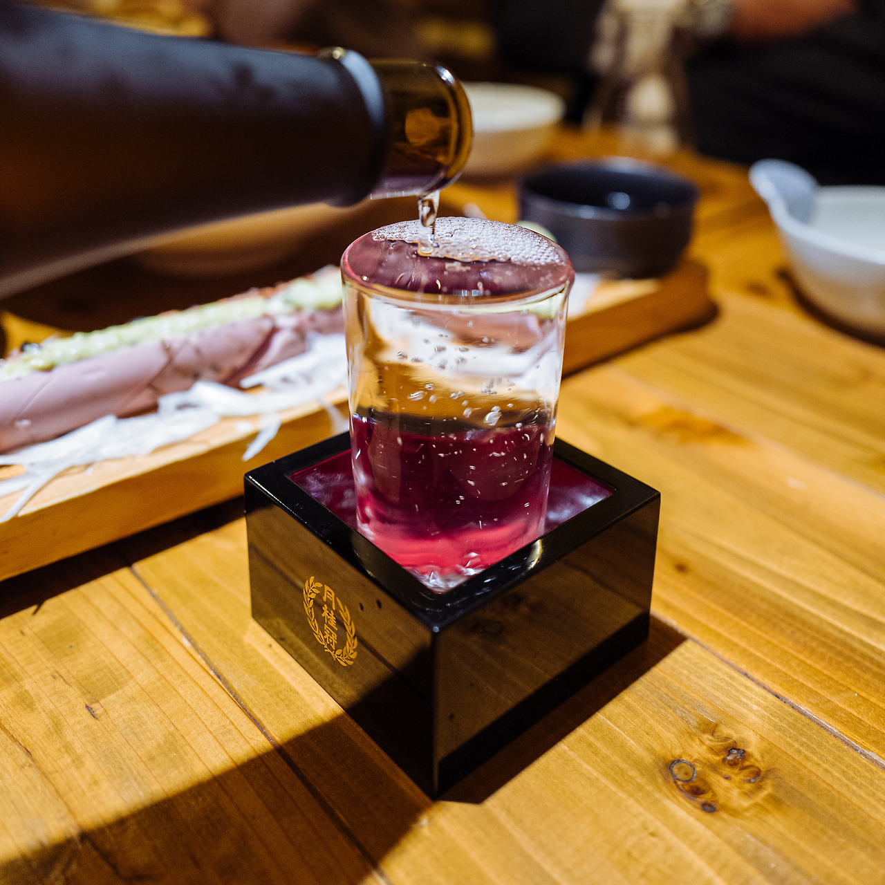 여행인지 밤인지 혹은 대화에 취해서인지 저도 모르게 일본술 한 잔을 주문했습니다. 쌀되 모양의 받침 위에 술잔을 올릴 때까지만 해도 그저 이 가게의 인테리어 정도로 생각했습니다만, 잔이 넘쳐 받침까지 찰랑거릴 정도로 가득 따라주는 술에 이내 황송해졌습니다. 후에 물으니 두 잔 같은 한 잔을 따라 주는 이 지역의 주도(酒道)라고 합니다. 참 푸근한 도시입니다.