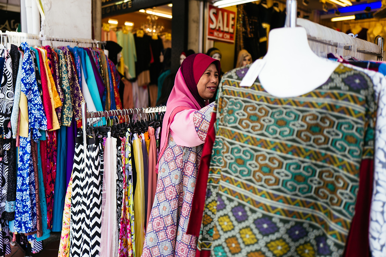 그들만의 독특한 컬러와 패턴으로 만든 옷과 카펫을 구경하는 것도 즐거웠습니다. 가게 안을 채우고도 모자라 골목까지 진열된 옷들은 화려함도 화려함이지만 단 하나도 같은 것이 없어 보일 정도로 다채로웠는데, 히잡을 쓴 여성들은 물론 짧은 반바지를 입은 금발 머리 여행자들도 유심히 옷을 고르고 몸에 대 보는 풍경이 웃음 짓게 만들었습니다. 도심에서 볼 수 없는 강렬한 색과 향에 취해서인지 그리 크지 않은 아랍 스트리트를 걷는 동안 지난밤의 싱가포르는 어느새 잊혔습니다.