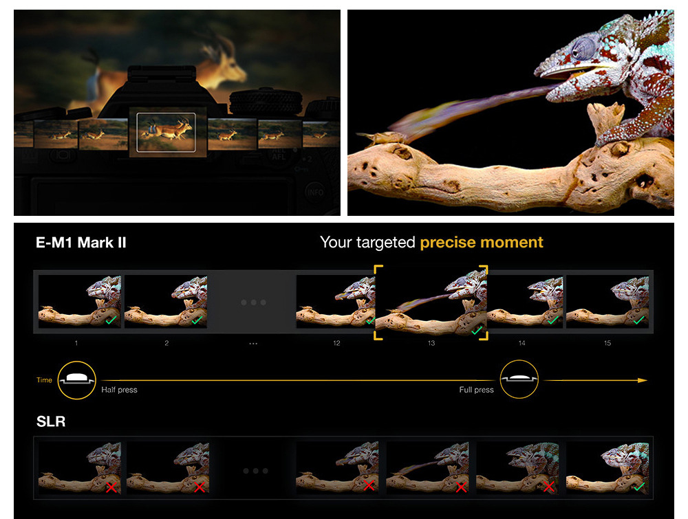 E-M1 Mark II의 속도를 이야기할 때 빼놓을 수 없는 한 가지가 더 있습니다. 새롭게 선보인 프로 캡처 기능입니다. 어려운 이름이지만 누구나 간편하게 활용해 만족스러운 이미지를 얻을 수 있는 유용한 기능입니다.
