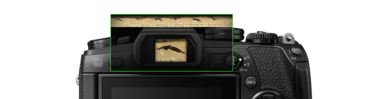 상단에 세 개의 다이얼과 다섯 개의 버튼을 배치할 정도로 인터페이스에 신경을 썼고 Fn 버튼과 커스텀 레버 등을 통해 사용자가 최적화된 조작계를 직접 디자인할 수 있습니다. 더불어 터치 조작이 가능한 스위블 방식의 디스플레이 등 기존 올림푸스 카메라의 편의장치 역시 그대로 계승합니다.