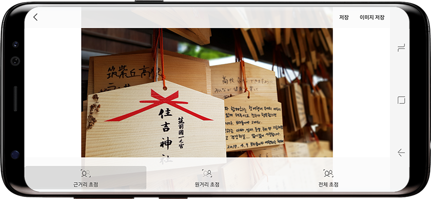 아웃 포커스 모드의 촬영은 한 번 셔터로 근거리와 장거리에 초점을 맞춰 여러 장의 사진을 찍은 후, 원하는 초점 부위를 선택하는 방식입니다. 촬영 후 포커스를 선택할 수 있기 때문에 아이폰 7 플러스의 인물 모드보다 선택의 폭이 넓습니다. 다만 세밀하게 거리를 분석하는 기술 없이 앞/뒤 초점 방식으로 다중 촬영을 하는 만큼 경계면의 블러 처리가 어색하게 적용되는 것, 그리고 모든 사진이 근접 촬영 위주라 결과물이 다소 단조로워지는 것은 앞으로 해결해야 할 숙제가 되겠네요. 다음 갤럭시 스마트폰에 두 개의 카메라가 달릴지도 모르고요.