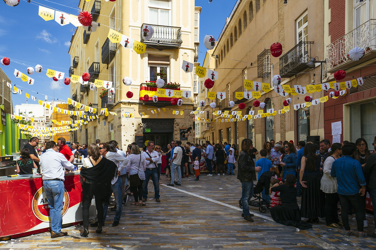 붉게 상기된 봄 날씨 아래 도시 곳곳에는 축제가 한창이었어요. 그저 잠시 머물다 떠나는 뜨내기에게는 언제부터 시작됐는지, 언제까지인지도 알 수 없는, 그래서 영원처럼 느껴지는 축제가. 넓고 좁은 골목들은 춤과 노래로 서로 이어졌고 낡고 군데군데가 떨어져 나간, 더러는 반쯤 허물어진 건물의 잔해들 사이로 고기 굽는 연기가 연신 피어올랐죠. 그 자욱한 배일 뒤의 장면들로 저는 그날 오후를 기억하고 있습니다. 대표적인 번화가인 칼레 시장(Calle Mayor)을 따라 걷던 길은 가게 밖으로 삐져나온 테이블, 술통으로 만든 간이 바Bar에 앉거나 기댄 사람들로 가득해 빠져나가기가 어려울 지경이었어요. 술 향은 또 어찌나 아찔했던지, 하마터면 다음 목적지를 포기하고 그 안으로 빨려 들어갈 뻔했다니까요.