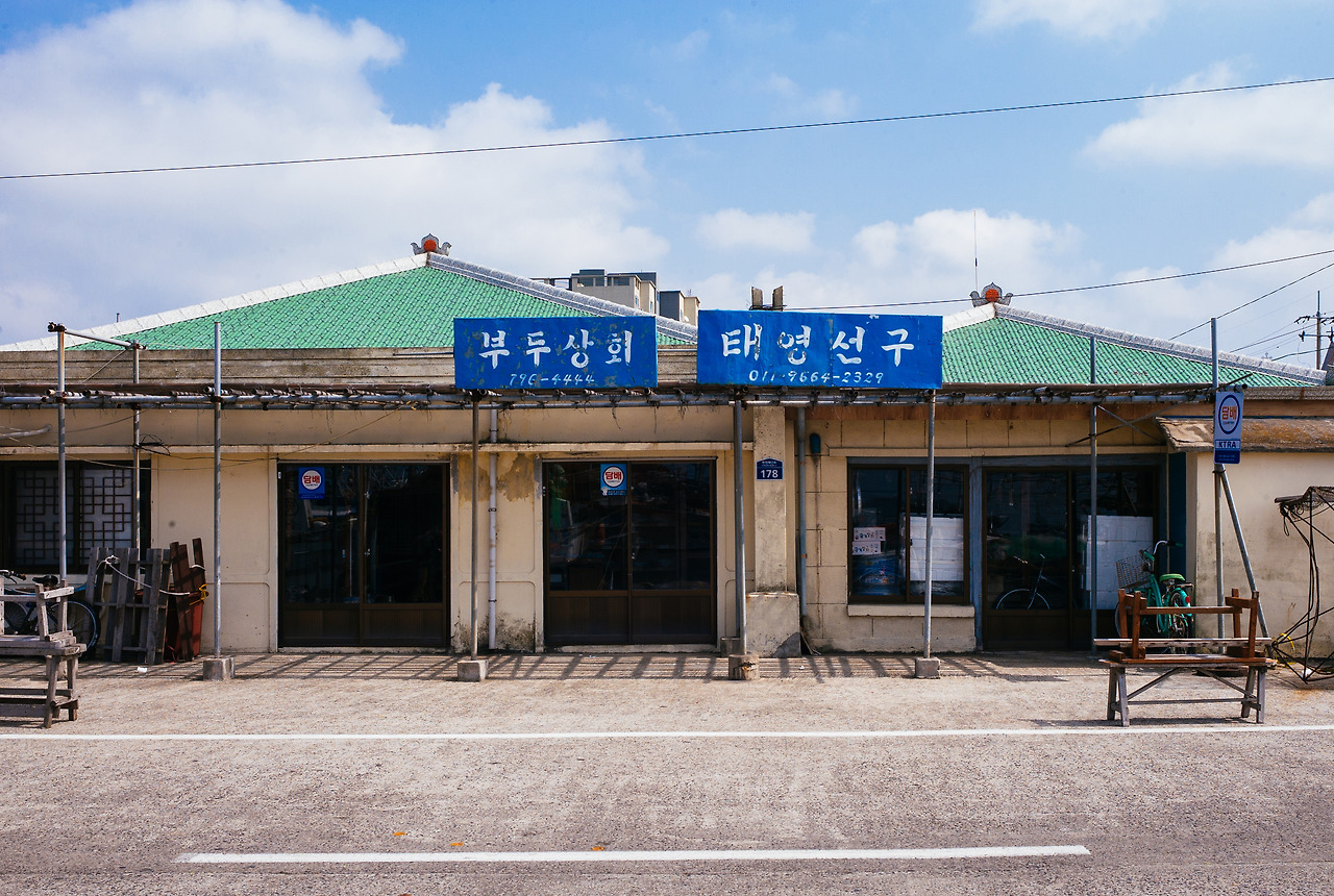 오후의 한림항은 썰물 후의 해변처럼 낡은 배와 건물들만 남아 있었습니다. 간간히 그물을 정리하는 어부들이 보였지만 그들이 새 봄 햇살을 가리거나 갈매기 소리를 덮을 수 없었으니 혼자 있는 것과 그리 다르지 않았습니다. 길게 뻗은 부둣가를 걷다가 파란색 간판이 삐뚜룸하게 걸린 낡은 건물 앞에서 걸음을 멈추고 한참 동안 바라보았습니다. 멋지게 낡은 ‘부두 상회’에서 어렸을 적 다락방에 올라가는 폭 짧은 나무 계단이 떠오른 이유를 설명할 수는 없습니다. 두 가게가 붙은 허름한 모습이 그때 살던 우리 집과 비슷했던 것 같다,라고 유추해 볼 뿐입니다. 습하고 훈훈한 공기도 다락방에 대한 기억을 되살리는 데 한몫했겠고요.