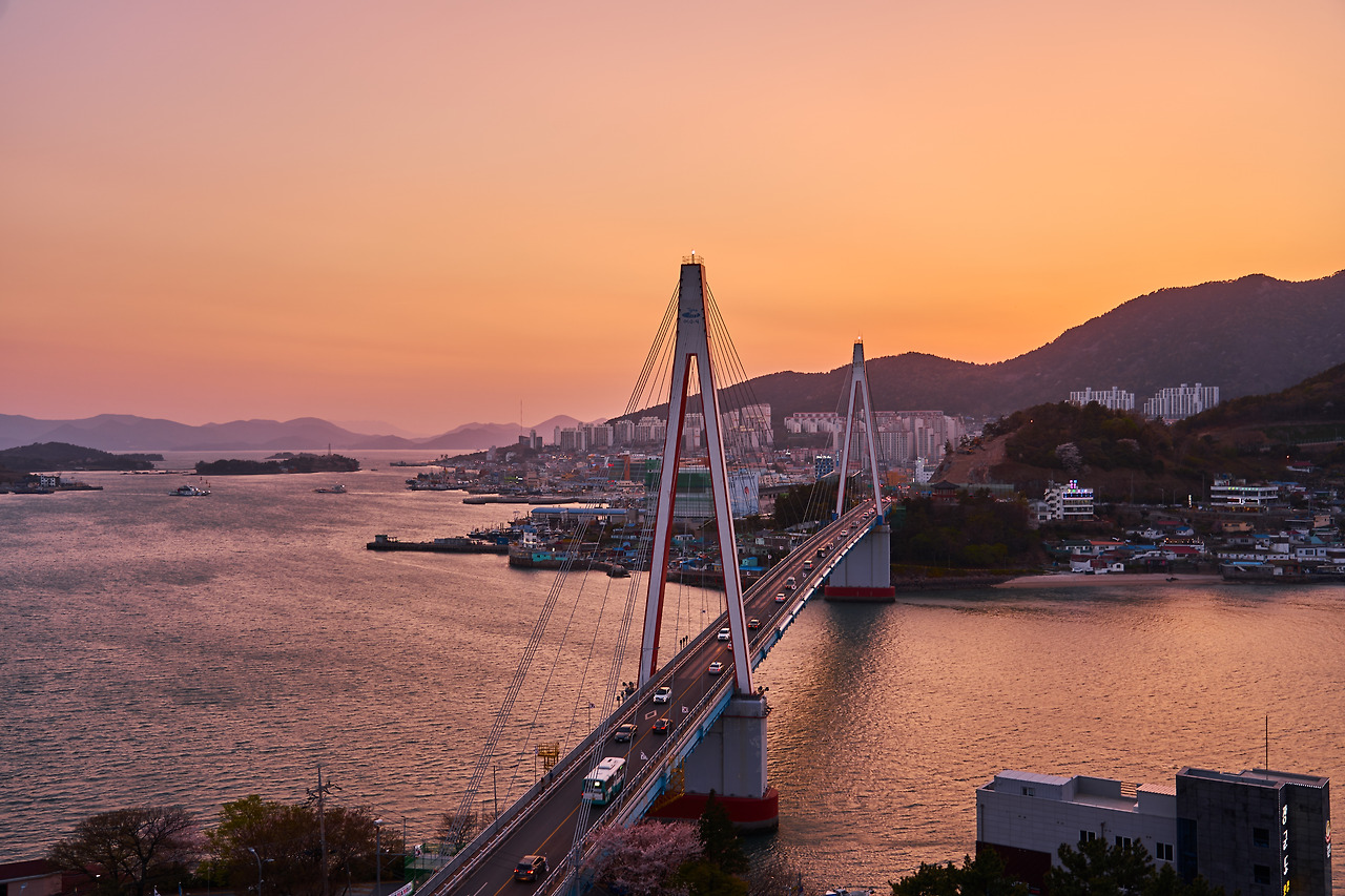 돌산 공원은 여수 바다를 가장 근사하게 볼 수 있는 곳으로 알려져 있습니다. ‘여수 밤바다’라는 제목이 붙은 사진 중 상당수는 돌산대교 주변으로 해안선과 능선, 그리고 작은 섬 장군도가 한 번에 보이는 돌산 공원 전망대의 프레임이더군요. 케이블카를 타는 대신 낡은 동네 골목길과 시장을 가로질러 걷느라 해가 거의 다 진 후에야 돌산 공원에 오르니 오후의 포근함 대신 쌀쌀맞은 강풍이 저를 맞았습니다. 그래도 붉은 노을이, 새까만 밤에 빠져 열 시가 다 되어서야 공원을 내려왔습니다. 그날의 야경을 저 역시 ‘여수 밤바다’라는 제목으로 기억하고 있는 것은 물론이고요.