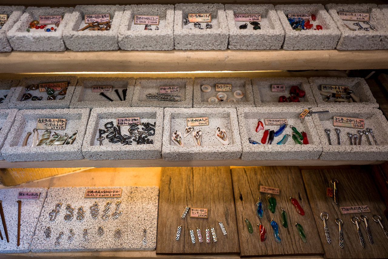 가게 안으로 들어서니 무언가를 만들던 주인이 고개를 들고 인사를 건넸습니다. 한 눈에도 무척이나 푸근한 인상이라 기분이 좋았어요. 짧은 눈인사를 건네고 분주하게 가게 안을 둘러보았습니다. 창 너머로 볼 때보다 더 많은 액세서리들이 저마다 다른 빛을 내며 좁은 가게 안을 환하게 채우고 있었습니다. 반지와 목걸이 등의 금속 액세서리부터 나무, 조개 공예품까지 다양한 종류의 제품을 취급하고 하나하나 손으로 직접 만드니 비슷하지만 똑같은 건 하나도 없답니다. 어딜 가나 비슷비슷한 기념품을 팔고 있는 국제 거리의 상점들에서 느낄 수 없는 특별함이라 빈 손으로 나갈 수 없다는 생각이 들어 가게 안에 있는 물건들을 더욱 유심히 봤습니다.