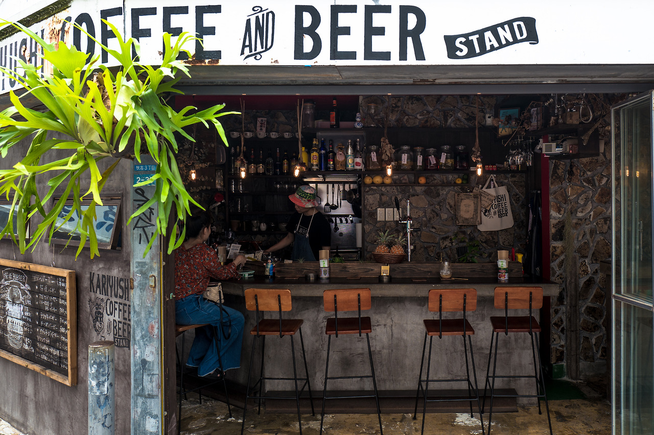 하지만 대로 안쪽의 골목에 들어서면 분위기가 꽤나 달라집니다. 초입에는 대부분 상점들이 늘어서 있지만 사, 오분만 파고들어도 관광객과 화려한 조명들을 거의 찾아볼 수 없습니다. 간편한 차림으로 장 보러 나온 동네 사람들과 오래된 건물, 낡은 간판들이 정겨운 시장 풍경을 연출하죠. 나하 시에 머무는 동안 이 골목 구석구석을 탐험하는 재미에 푹 빠져 지냈습니다. 건물 모퉁이를 터서 만든 근사한 카페와 오래된 장난감을 파는 한 평 남짓한 보물섬, 그리고 특별한 잡화점 하마키치를 발견했습니다.