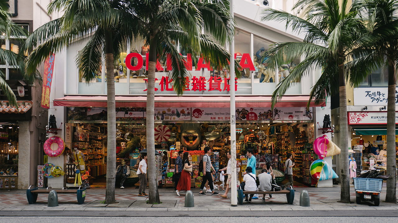 오키나와에서 가장 큰 번화가인 나하(那覇) 시 국제 거리. 길이가 1마일에 달해 ‘기적의 1마일’로 불리는 이 거리에는 관광객들을 대상으로 한 상점과 식당, 펍이 빼곡하게 늘어서 있습니다. 그들이 밝히는 조명과 끊임없이 모여드는 인파로 밤낮이 따로 없을 정도죠.