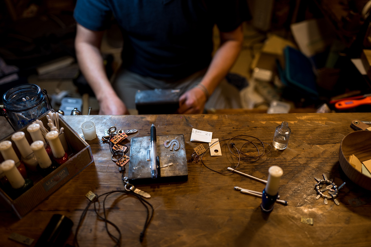 몇 분의 고민 끝에 네모 문양이 노란색으로 채워진 펜던트와 벽에 걸린 밤색 줄을 골랐습니다. 재료를 건네받은 주인은 둘을 작업대에 놓더니 몇 번의 손짓과 망치질로 금방 목걸이를 완성해 제 손바닥 위에 올려놓았습니다. 펜던트 뒷면을 보니 오늘 날짜와 제 이름이 위쪽에 바짝 붙어 새겨져 있더군요. 아래가 휑하게 비었다 싶었는데 눈치 빠른 주인이 제가 채 묻기도 전에 그 이유를 설명해 줬습니다. 다음에 목걸이의 주인과 함께 오키나와에 오게 되면 꼭 다시 들러달라고, 그때 빈칸을 그분의 이름으로 채워 드리겠다면서요. 반할 수밖에 없는 마음씨 아닌가요?