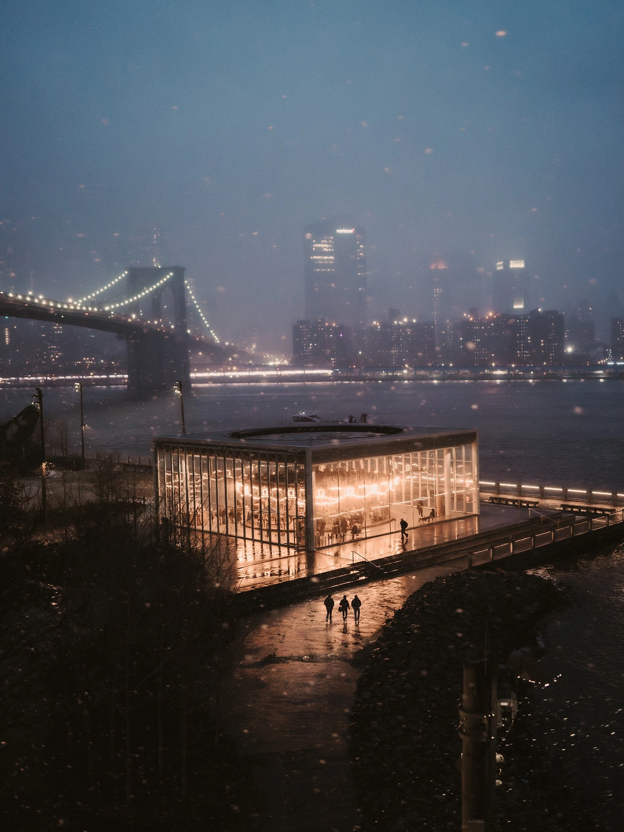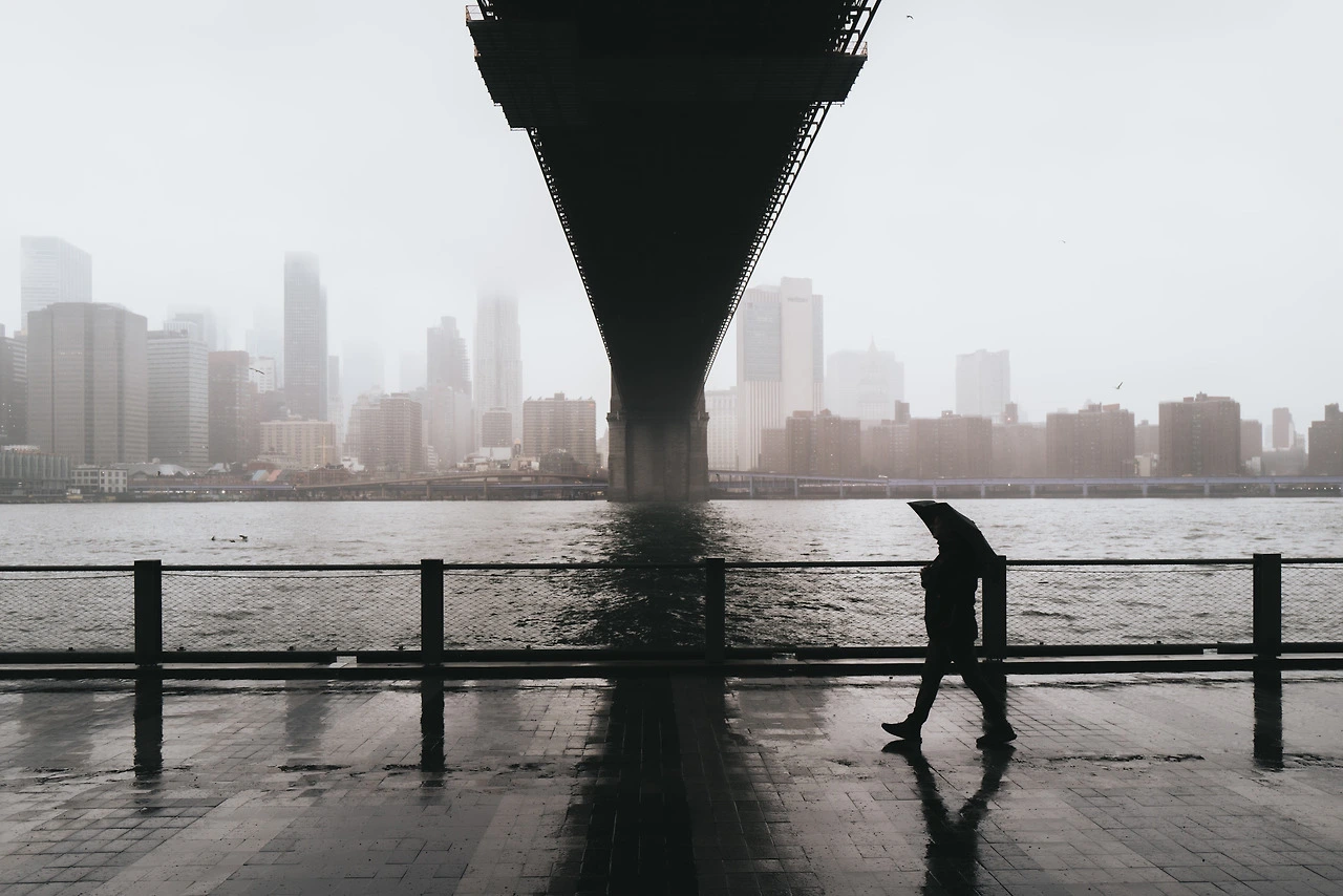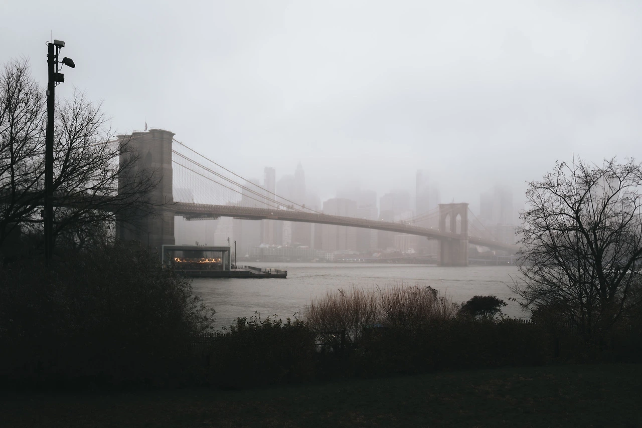 가을에서 겨울로, 호텔에서 아파트로 그렇게 관광객에서 여행자로. 도시도 나도 조금씩 바뀌고 곧 거기 적응했지만 좀처럼 달라지지 않는 것이 있었으니 주말마다 찾아온 비소식이다. 기록을 뒤적여보니 11월 26일부터 12월 17일까지 한 달이었다. 안개비든 소나기든 일요일엔 비가 내렸고 그때마다 나는 브루클린 브리지에 있었다. 어느 날은 다리 위에서 반대편 풍경과 사람들을 봤고 또 어떤 날엔 다리 아래 공원과 자갈밭, 타임 아웃 마켓의 옥상 전망대에서 다리와 근처 풍경을 감상했다. 비 와서 안개 자욱해지면 여기가 꽤나 근사하겠다고, 그 유명한 덤보(DUMBO)를 처음 찾아갔던 새벽의 감상이 어쩌다 보니 주말의 루틴이 된 것이다. 어쩌면 비가 와서 간 게 아니라 내가 가서 비가 온 건지도 모르겠다만.