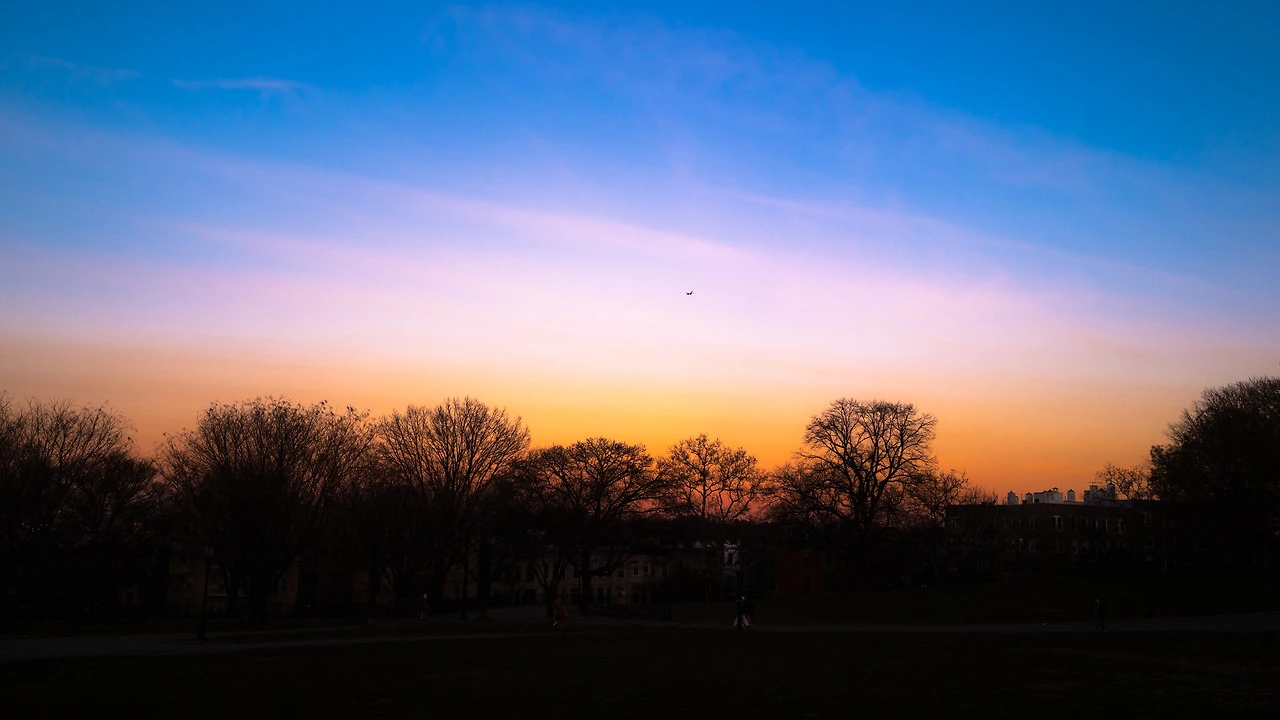 그날의 노을은 서서히 예열되는 듯하다 한순간 강렬하게 타고 곧 사라졌다. 저 멀리 북대서양에서 온 노란빛, 숲에서 뿜어져 나와 하늘에 번진 오렌지색 숨, 두 색의 경계를 타고 흐른 보랏빛 물결. 산책 나온 강아지의 뜀박질도 잦아들게 할 만큼 강렬했던 쇼에 대한 내 한 줄 평은 ‘닉값 제대로 했다’ 정도로 할까. 앉는 것도 잊고 멍하니 서서 구경하는 동안 생각했다.