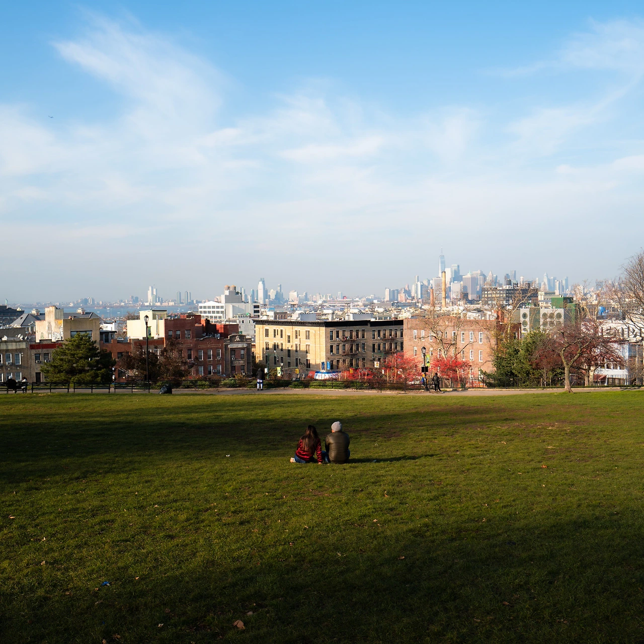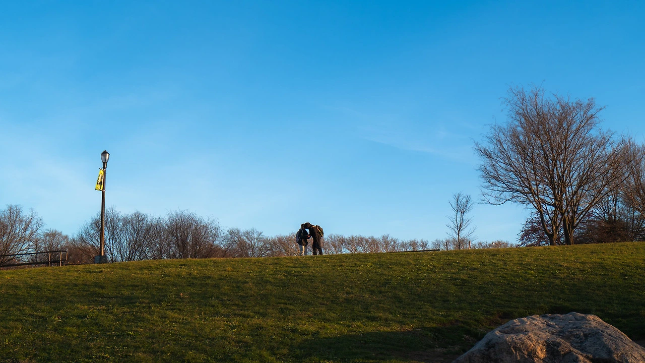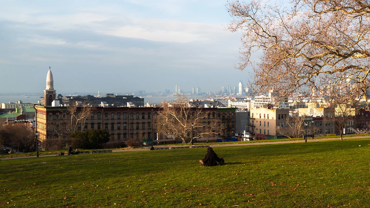 이 작고 푸른 언덕과의 인연은 한 달 전으로 거슬러 올라간다. 12월이 되자 도시는 홀리데이 시즌 분위기로 물들었고 나는 곳곳에서 벌어지는 크고 작은 사건들을 쫓아다니느라 바빴다. 그날 목적지는 크리스마스 마을로 유명한 다이커 하이츠였다. 도시의 모든 장면들을 눈에 담고 싶단 포부로 나는 브루클린 다리부터 12km 넘는 거리를 걷기로 했다. 지나 보니 뭐 그렇게까지 했나 싶은, 그 해 겨울 통틀어 가장 긴 산책이었다. 맨해튼의 화려함과 상반된 브루클린 외곽 골목의 평온함이 그땐 솔직히 지루했다. 생각이 따분해지니 금방 발까지 무거워져서 몇 블록 거리에 있는 공원을 중간 기착지로 선택했다. 사실은 제법 부풀어 오른 방광을 늦기 전에 비워야 했다. 하지만 계획은 보기 좋게 실패했다. 오르막길의 시험, 구불구불한 고난의 길을 견뎌 마침내 정상에 올랐건만 안타깝게도 화장실 문이 잠겨 있었다. 언덕 아래에 있는 카페나 식당에 가자니 그것도 먼 길인 데다 올라온 게 억울하고 아까워서 공원 구경이나 하고 내려가기로 했다.
