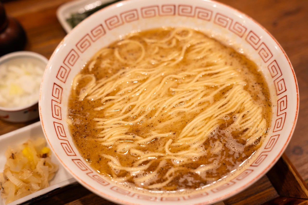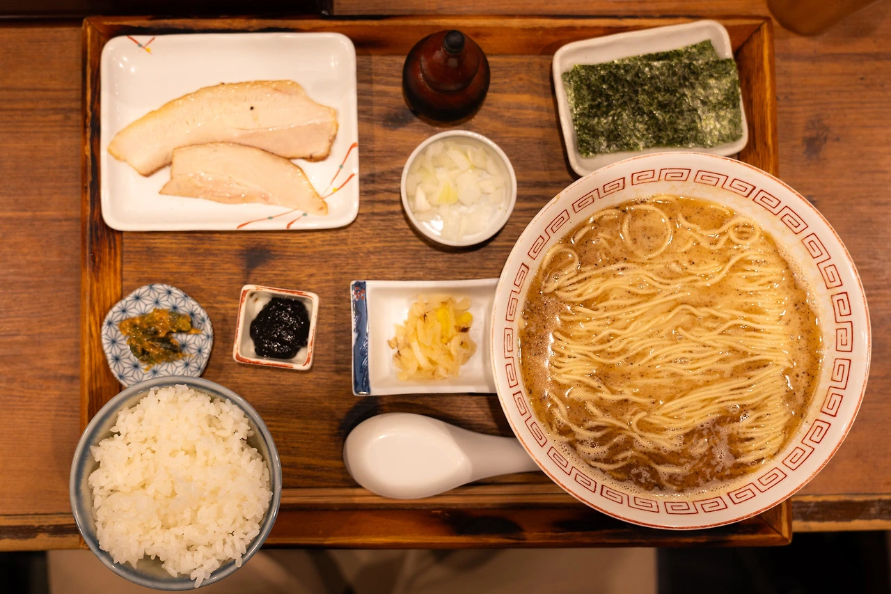 돈코츠 라멘처럼 멸치를 긴 시간 끓여 뽑아낸 육수를 썼습니다. 그동안 해산물 베이스 라멘들은 여럿 먹어 봤지만 멸치 라멘은 처음이라 신선했어요. 식당 안에 진동하는 멸치 냄새와 국물 색깔이 우리나라 멸치 국수를 떠올리게 하더군요. 하지만 육수의 맛은 멸치 국수보다 훨씬 진했습니다. 게다가 멸치 내장을 제대로 제거하지 않았을 때 나는 쓴맛이 느껴졌습니다. 우리가 깔끔, 담백한 맛으로 멸치 육수를 즐기는 것과 달리 여기선 감칠맛을 극대화하는 쪽으로 멸치를 먹나 봅니다.