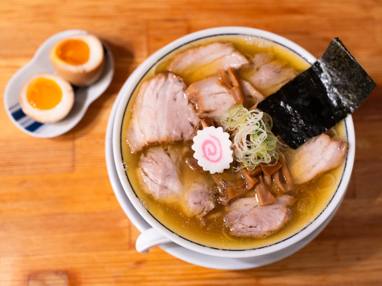 토핑은 따로 먹어도, 라멘에 넣어 국물의 맛과 온도를 배게 해도 좋았습니다. 다만 오리 고기는 라멘 위에 올리는 편이 촉촉해서 더 좋았습니다. 반숙 달걀은 익힘과 간이 완벽했어요. 달걀 하나만으로도 디럭스 세트를 주문할 가치가 있습니다.