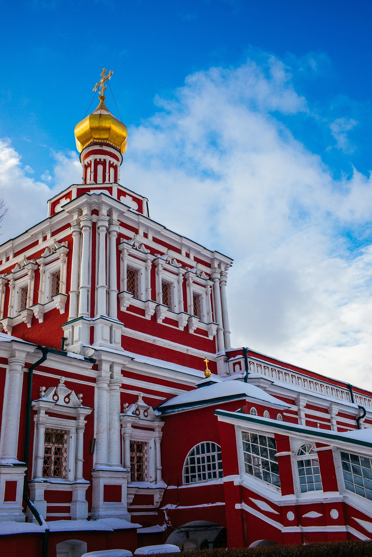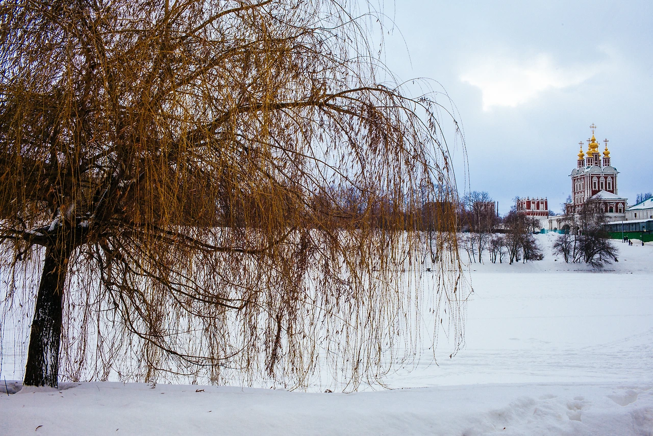 건너편 노보데비치 수도원의 다양한 건물들은 특유의 고풍스러운 건축 스타일로 못 건너 제 마음을 들뜨게 했습니다. 성 바실리 대성당과 함께 러시아 전통 건축 양식의 정수를 느낄 수 있는 곳이라고 하죠. 당장 달려가고 싶었지만, 우선 눈에 덮인 이 한겨울의 공원이 저에겐 너무 매력적이었기에 훌쩍 한바퀴를 돌아보고 나서 들어가겠노라 다짐합니다.