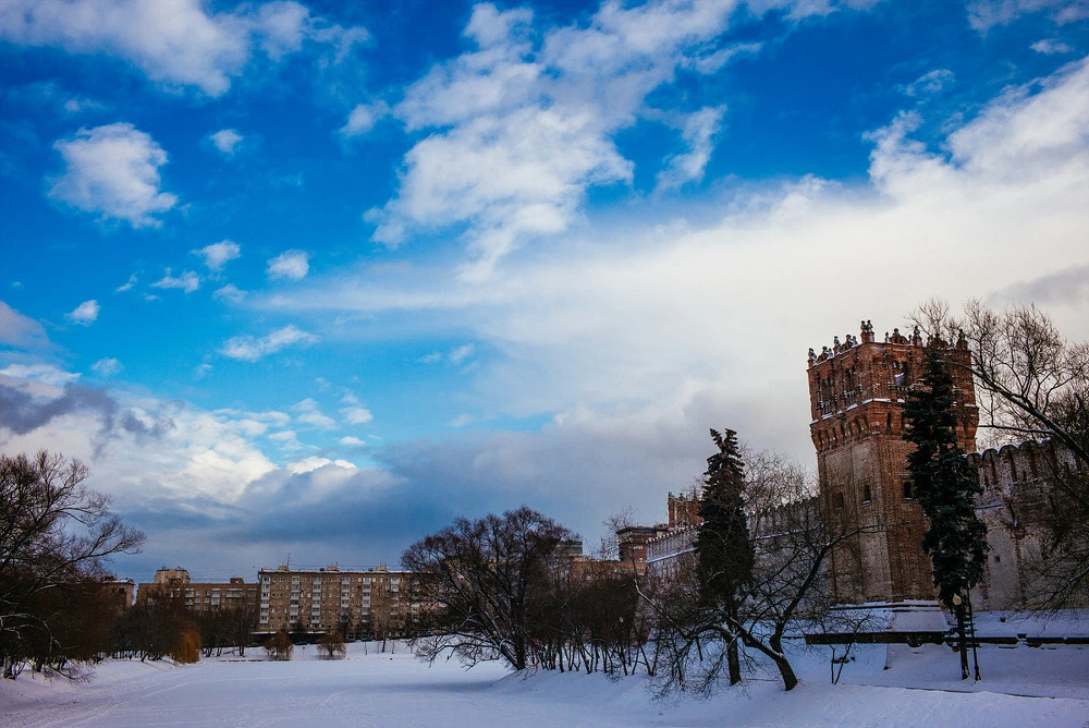 멋지게 연출된 하늘 아래서 노보데비치 수도원의 성곽이 그림처럼 빛나 보입니다. 이 풍경을 보고 있자니 만약 이 노보데비치 공원에 오지 않고 바로 수도원으로 갔으면 이런 멋진 풍경과 오전의 설경을 볼 수 없었겠구나라는 생각에 괜히 뿌듯해집니다. 이제는 노보데비치 수도원으로 빨리 달려가고 싶어 집니다. 더 늦기 전에, 다시 폭설이 쏟아지기 전에 말이죠.