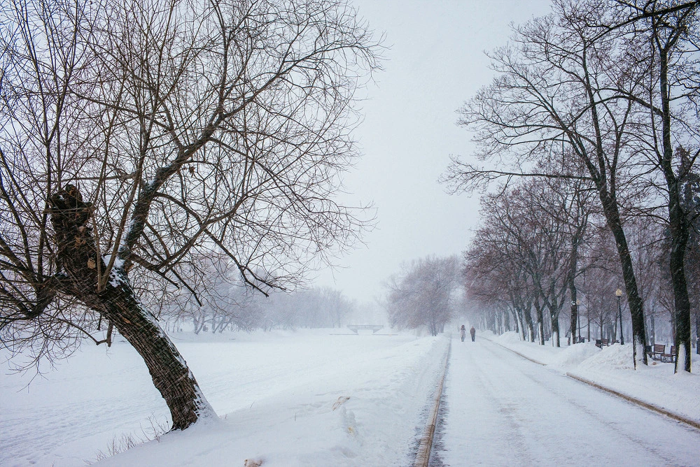 잠시 눈을 피했던 할머니와 아이도 다시 산책을 시작하네요. 영하의 날씨에도 야외 수영을 즐긴다는 러시아답게 이 곳의 아이들은 태어날 때부터 이렇게 '추위 대응 훈련'을 하는 걸까요?