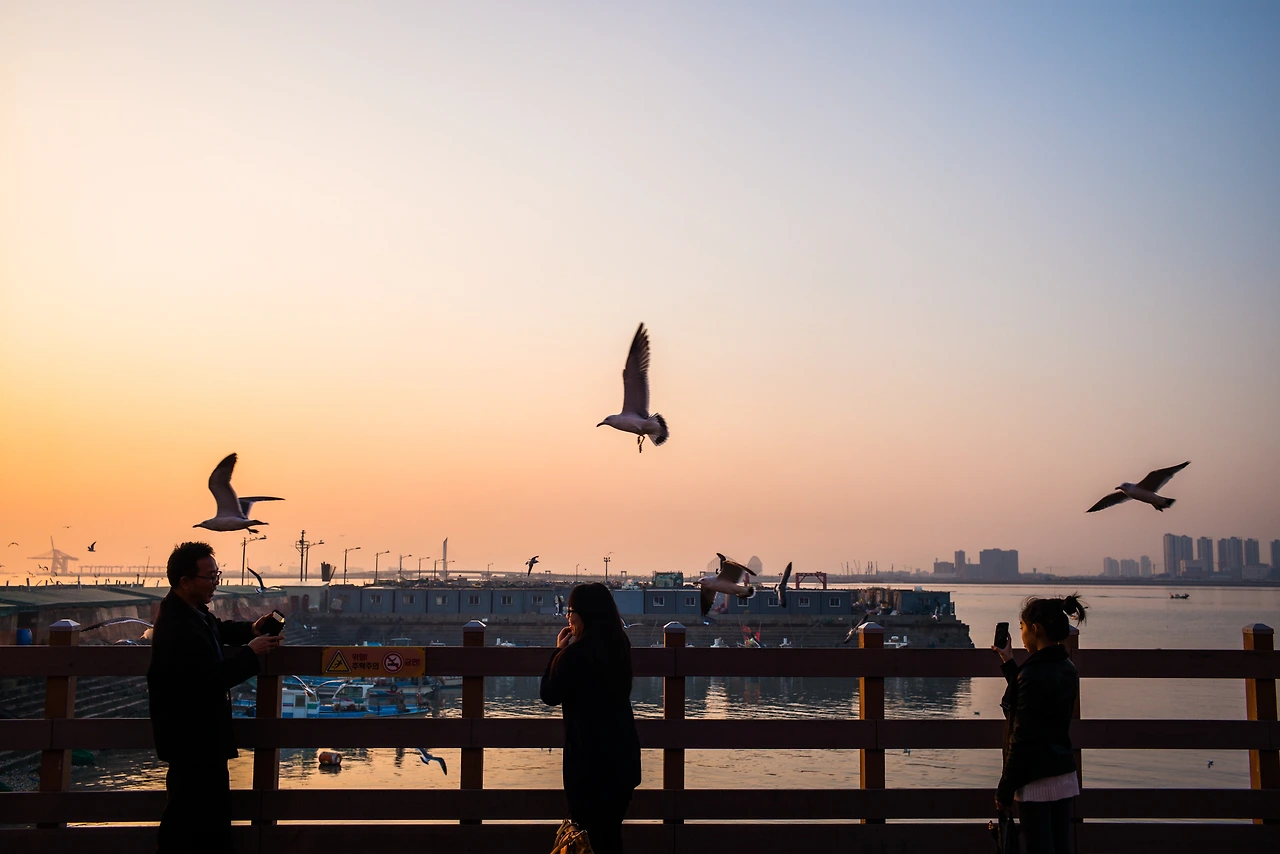 게다가 손쉽게 '그럴듯한' 사진을 찍을 수 있는 지름길이기도 합니다. 야경 촬영처럼 삼각대나 릴리즈 같은 생소하고 어려운 것들이 필요하지 않거든요. 그래서 제 보관함에는 유독 노을 사진이 많습니다. 매일 지나는 집 앞 공원부터 일부러 찾아간 바닷가, 언제 다시 갈지 모를 바다 건너 도시까지 배경도 참 다양합니다. 같은 배경, 같은 구도의 사진도 많은데 어느 한 장 버리기가 쉽지 않습니다.