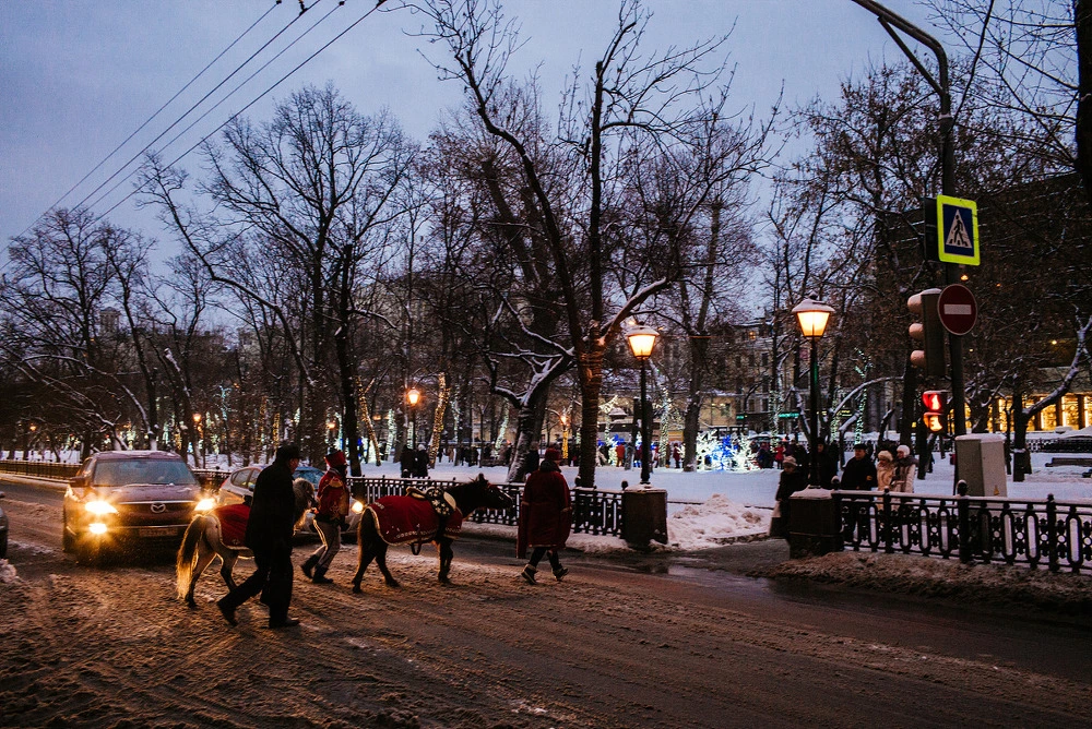 모스크바 곳곳이 그렇지만, 이 트레브스카야 지역에는 동네마다 크고 작은 공원이 이렇게 조성되어 있습니다. 서울에선 쉽게 볼 수 없는 이 풍경은 아마도 땅이 충분히 넓은 러시아이기 때문이 아닐까요? 어느덧 해가 지고, 아쉬움을 뒤로 하고 돌아오는 길에 발견한 이 작은 공원에는 마치 숨겨진 축제장처럼, 이 곳을 수고스레 찾아오지 않는 이에게는 일어나지 않을 일들이 벌어지고 있었습니다. 아마도 이 주변 주민들을 위해, 그들에 의해 열렸을 법한 크리스마스 축제가 벌어지고 있는 것이죠. 이것은 정말, 관광객이 아닌 그들만의 것입니다. 그래서 더욱 저를 흥분시켰습니다.