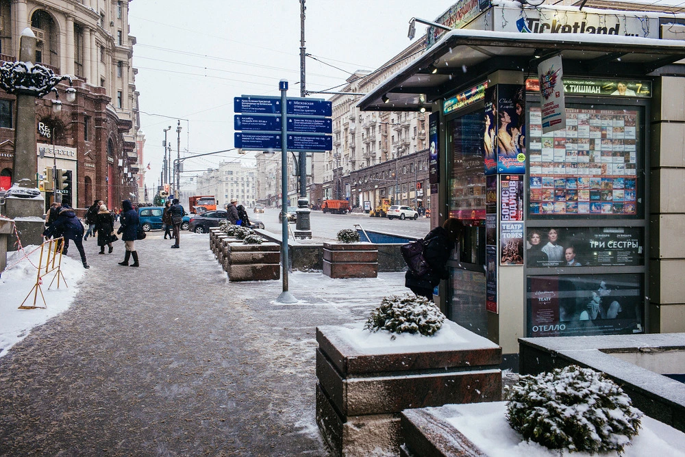 오랫동안 계획해 온 여행에는 누구나 빈 틈 없는 완벽한 스케줄을 바라고 세우지만, 제 여행 중 하루쯤은 아무 계획 없이 혹은 갑자기 떠오르거나 지나치다 눈에 들어온 곳으로 무작정 떠나 보는 '자유 속의 자유' 여행을 해 보고 싶었습니다. 이제 서울보다 모스크바의 풍경과 공기가 익숙해지던, 행인들을 보며 제 머리만 검다는 사실조차 잊혀 갈 때쯤 저에게 그 '소중한 하루'를 주었습니다. 외국 관광객을 위한 장소가 아닌, 현대 모스크바 사람들이 실제 숨 쉬는 곳을 꼭 가보고 싶었으며, 그래서 결정한 장소는 붉은 광장과 마네쥐 광장 건너편에 있는, 후에 저에게 '가장 모스크바다운 거리'로 기억된 푸쉬킨스카야(Pushkinskaya) 지역, 트베르스카야(Tverskaya) 거리였습니다.