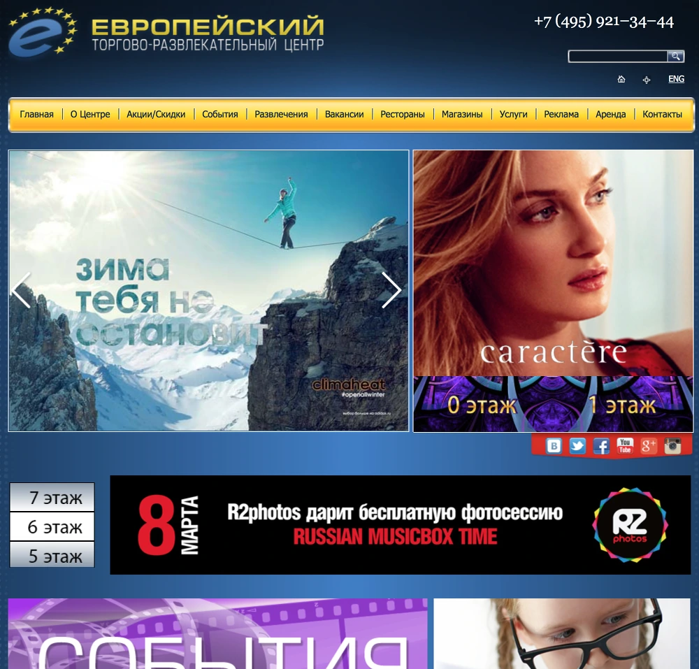 Европейский - 편의상 유러피안몰이라고 하겠습니다- 은 지하철과 러시아 철도가 만나는 키에브스카야 (Киевская)역 맞은편에 있는 대형 쇼핑몰로 지상 4층, 지하 1층 규모에 수백개의 의류, 잡화 매장과 카페, 레스토랑이 몰린 대규모 단지가 역시 러시아다운 느낌을 주는 곳입니다. 굼 백화점과 쭘 등이 러시아 전통 양식의 전통 건축물에 고급 브랜드 위주의 현대 상점의 모습을 구성한 반면, 이 유러피안 몰은 외관부터 철저하게 현대 대도시 어디에서나 볼 수 있는 형태를 하고 있으며, 내부 입점된 매장 역시 자라와 H&M. 탑맨 등의 글로벌 스파 브랜드와 GAP, 캘빈클라인, 나이키 등 해외 유명 브랜드들로 이뤄져 있습니다.