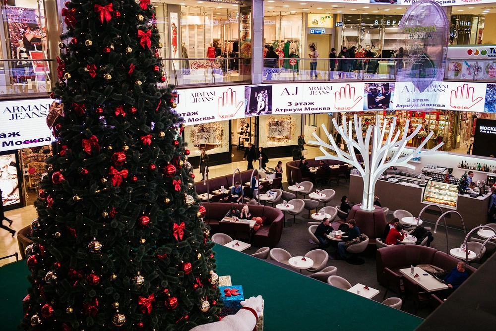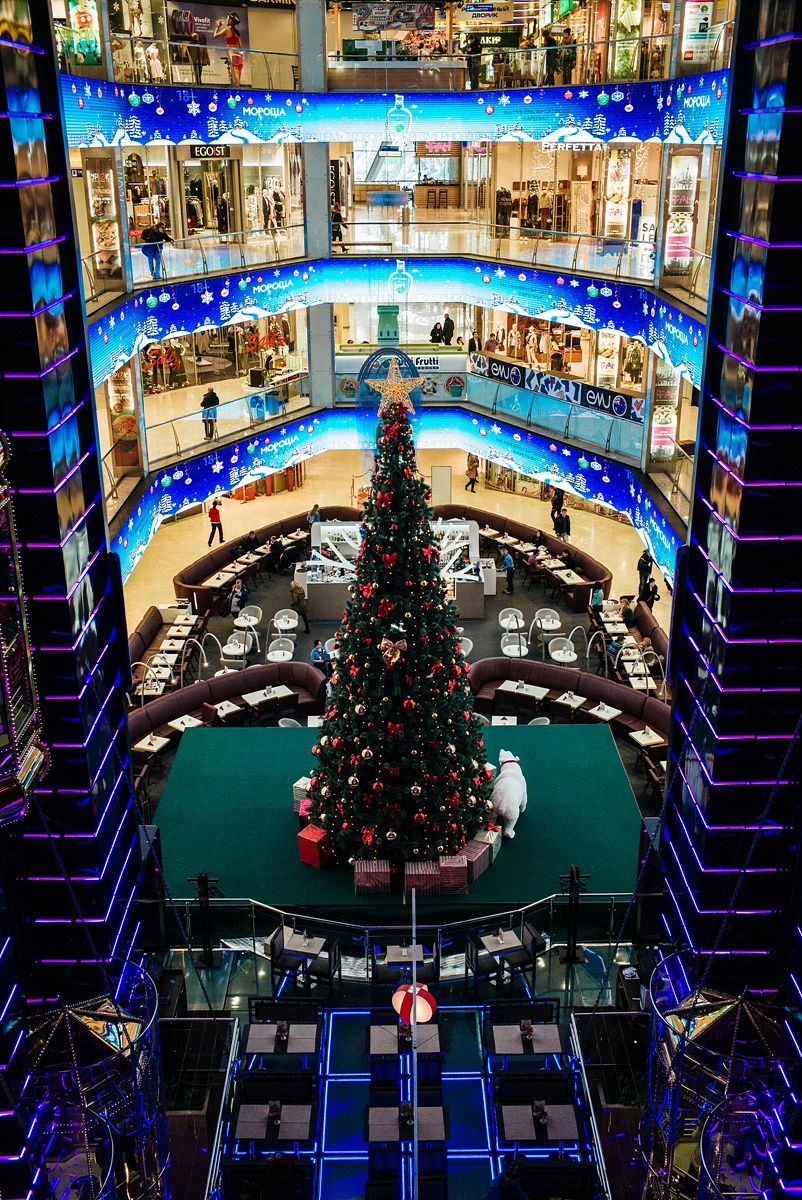 다분히 차갑고 현대적인 이 평범한 쇼핑몰 건물도 러시아인 특유의 예술혼은 막을 수 없었던지 유러피안 몰 내부 풍경 역시 쇼핑 못지 않게 여행객에겐 좋은 경험입니다. 제가 찾는 크리스마스 시즌에는 이렇게 중앙 홀에 거대한 트리 장식을 세워 사람들의 시선을 사로잡았죠. 에스컬레이터를 탈 때마다 이 아름다운 모습에 반해 사진을 찍었던 기억이 납니다. 크리스마스도, 겨울도 지난 지금 저 곳은 어떤 모습일까요?