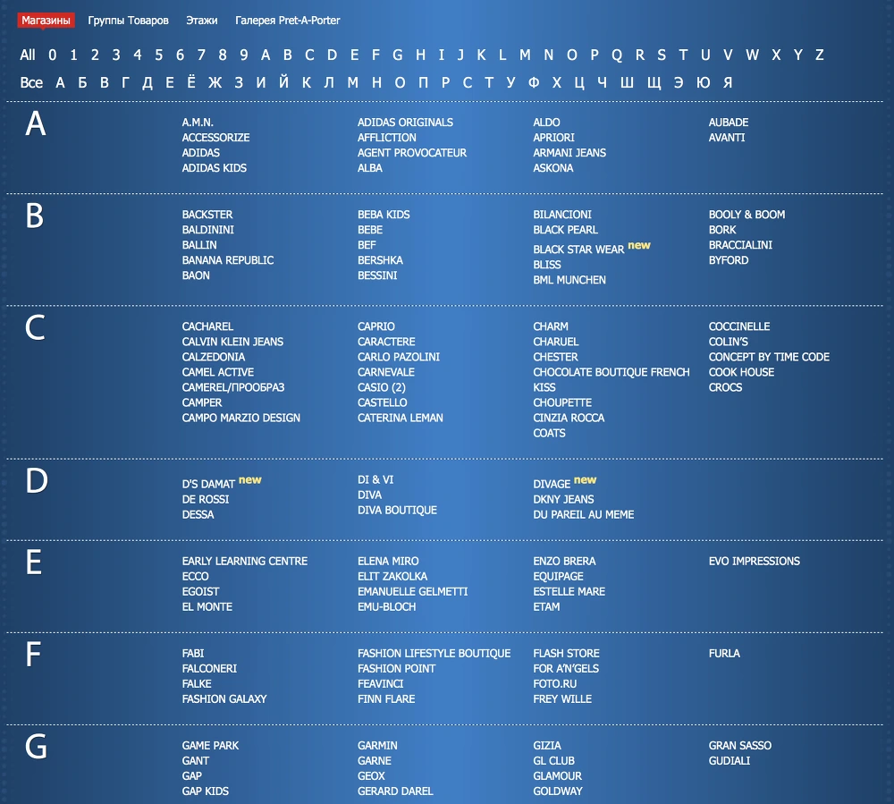 홈페이지에 기재된 입점 내역을 보시면 이 대형 쇼핑몰의 규모를 대강이나마 짐작할 수 있습니다. 우리나라 중심가에서도 쉽게 볼 수 있는 글로벌 브랜드들이 대부분을 차지하며 명품 브랜드를 쉽게 찾아볼 수 없습니다. 실제로 모스크바 중심가의 굼, 쭘 백화점보다 저렴한 의류 등의 쇼핑에는 더욱 유리한 곳입니다. 제가 갔을 때에는 시즌 오프와 세일이 겹쳐 저를 흥분(?)시켰죠.