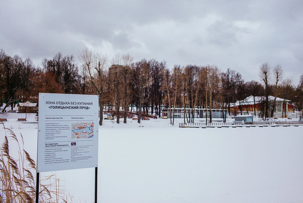 고리키 공원 내에 위치한 큰 연못입니다. 이 곳을 찾기 전 검색한 결과에 따르면 봄과 여름에는 이 연못 주위에서 일광욕을 즐기거나 낮잠을 자는 모스크비치들을 쉽게 볼 수 있다고 하네요. 휴식 공간 고리키 공원 내에서도 가장 '명당 자리'가 되겠죠? 물론 이 날은 이렇게 땅인지 물인지 알 수 없는 설원이었습니다. 이 날 날씨처럼 하얀 표지판이 '아마 여기가 거기일걸?!' 하며 저를 놀리는 것 같습니다.