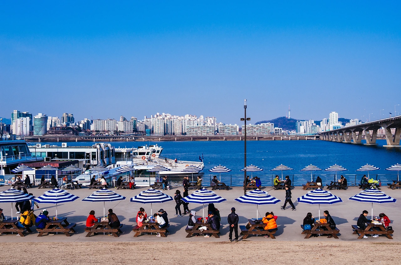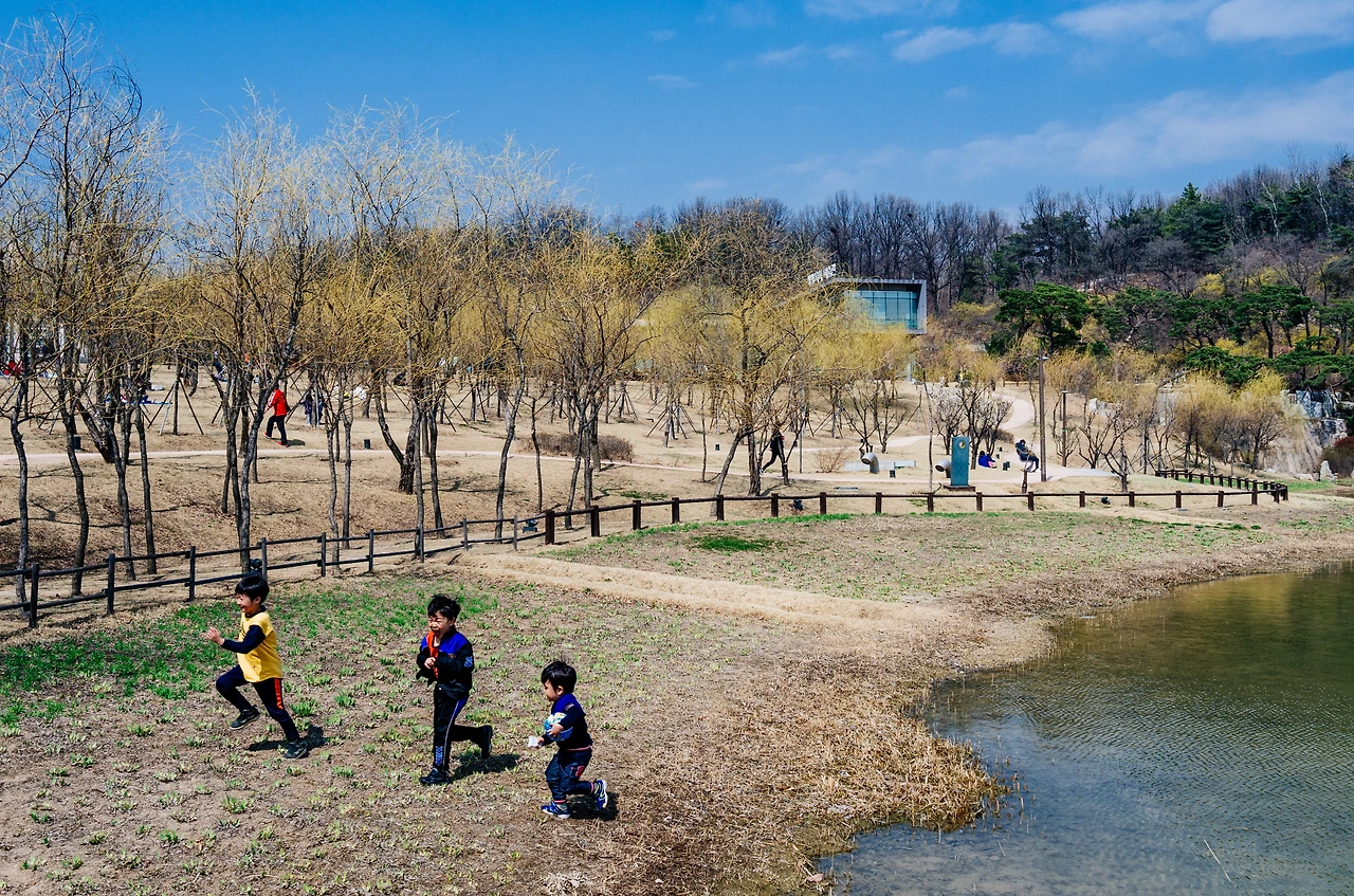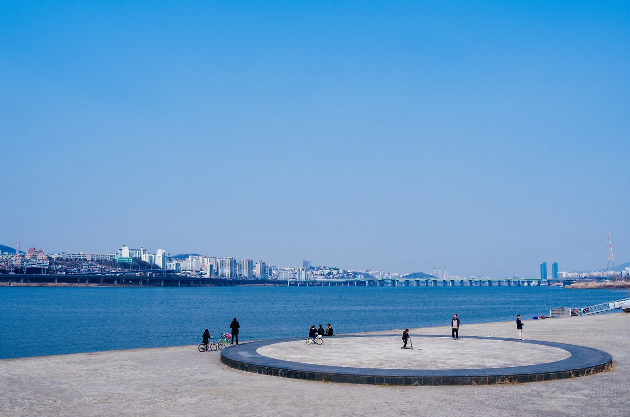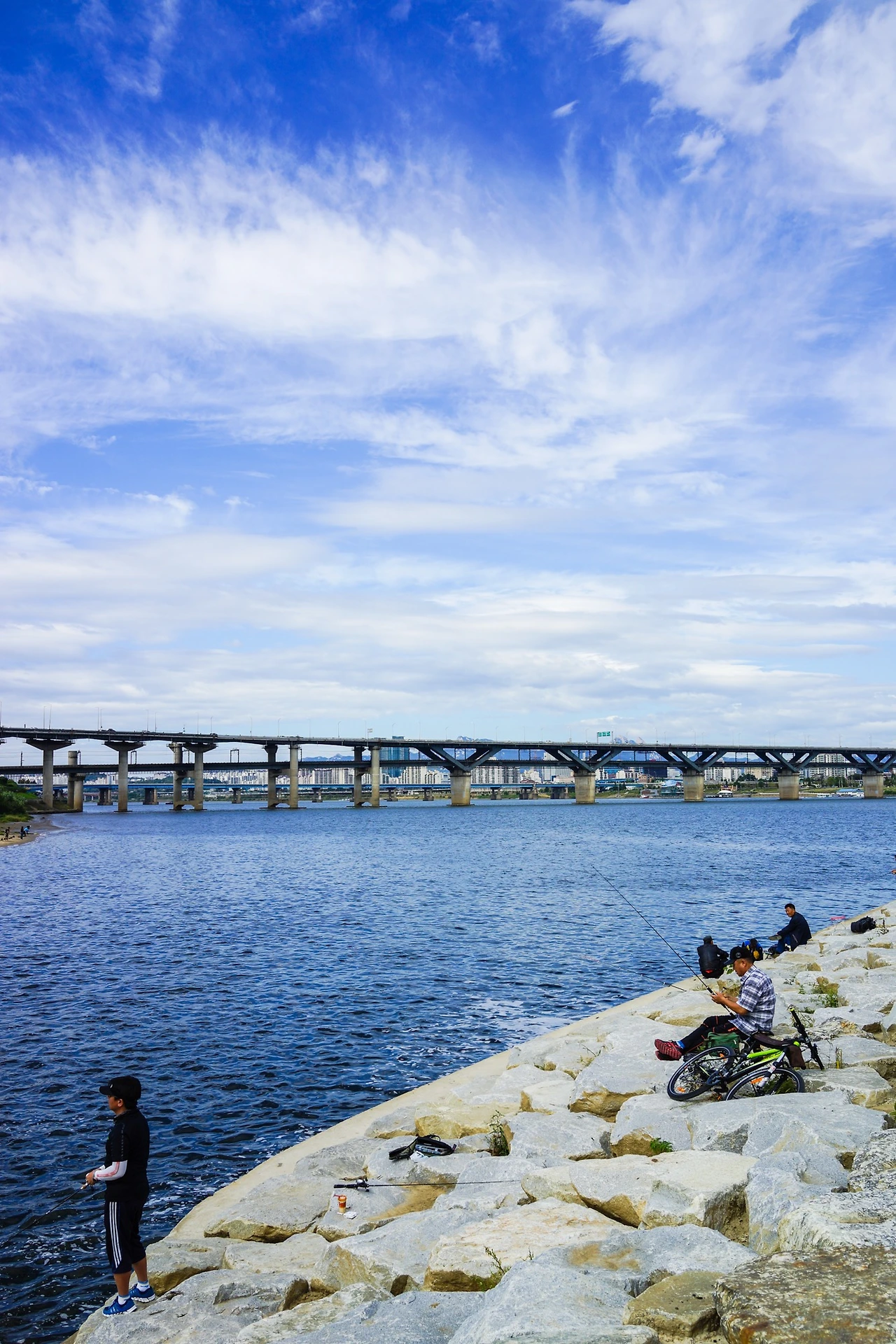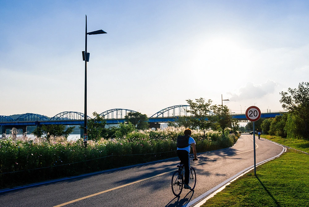 기껏해야 수십 분 상관의 거리를 다녀오는 라이딩이니만큼 도시의 풍경에서 완전히 벗어날 수는 없습니다. 그리고 도시 안엔 저처럼 자전거를 타며 여가를 보내시는 분이 정말 많죠. 그들의 달리는 모습도 이 색다른 풍경에서 인상적인 장면을 만듭니다. 때로는 앉아 쉬던 중에 마주친 아이들의 움직임도요. 공통점은 뜨거운 도시 한복판에서는 다 말라 사라진듯한 '여유'를 이 사람들에게서는 어렵지 않게 발견할 수 있다는 것입니다.