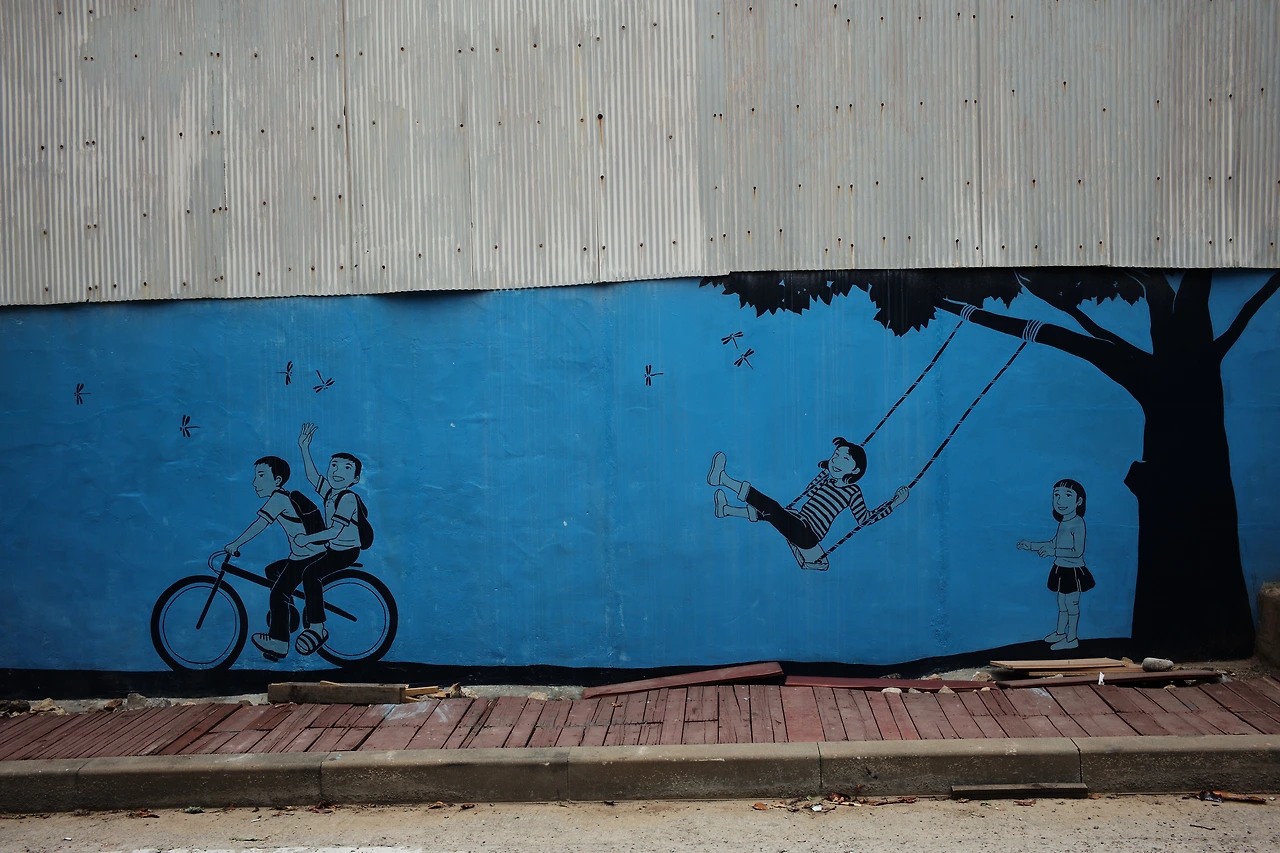 그 곳에서 멈춰 찍은 사진들 역시 다른 것들과 분명 다른 느낌이라 좋아합니다. 사람이 없기 때문이기도 하고 세련되지 않아서이기도 합니다. 빠르게 달리며 마음에 드는 장면을 빠르게 '포착'하는 과정은 다채로운 음식들이 있는 뷔페 식당에서 좋아하는 음식을 고르는 것처럼 즐겁습니다. 무엇보다 효율과 돈을 위해 천편일률적으로 만든 도시의 색과 형태가 이 곳에는 없어서 좋습니다.