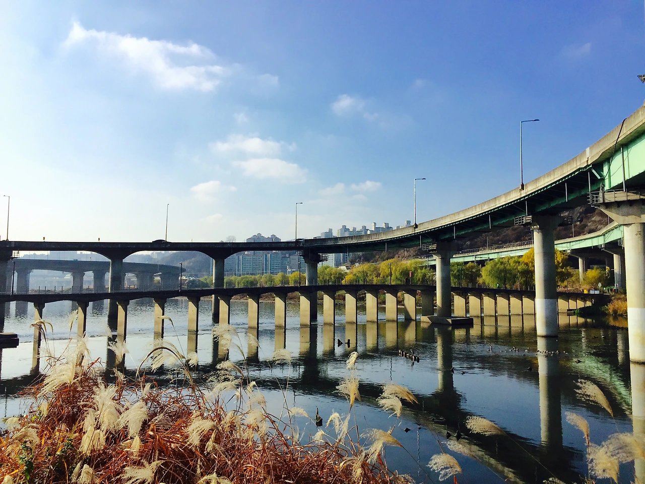 하지만 이 지나가던 길에 발견한 장면들은 그동안 제가 모르고 살던 것들이었습니다. 다리 위를 자동차로 지날 때 이 다리는 단순히 강을 넘기 위한 수단이지만 다리 아래에서 보니 꽤나 아름다운 그림이었고 자전거로 산을 관통할 수 있는 동굴이 있다는 것도 새롭게 알게 되었죠. 이제 막 터지기 시작한 한강시민공원의 코스모스들은 한여름처럼 땀에 젖은 제게 가을이 왔음을 알려주었습니다. 이 풍경을 '조금 더, 조금 더' 보자며 무거운 페달을 밟을 수 있었습니다.