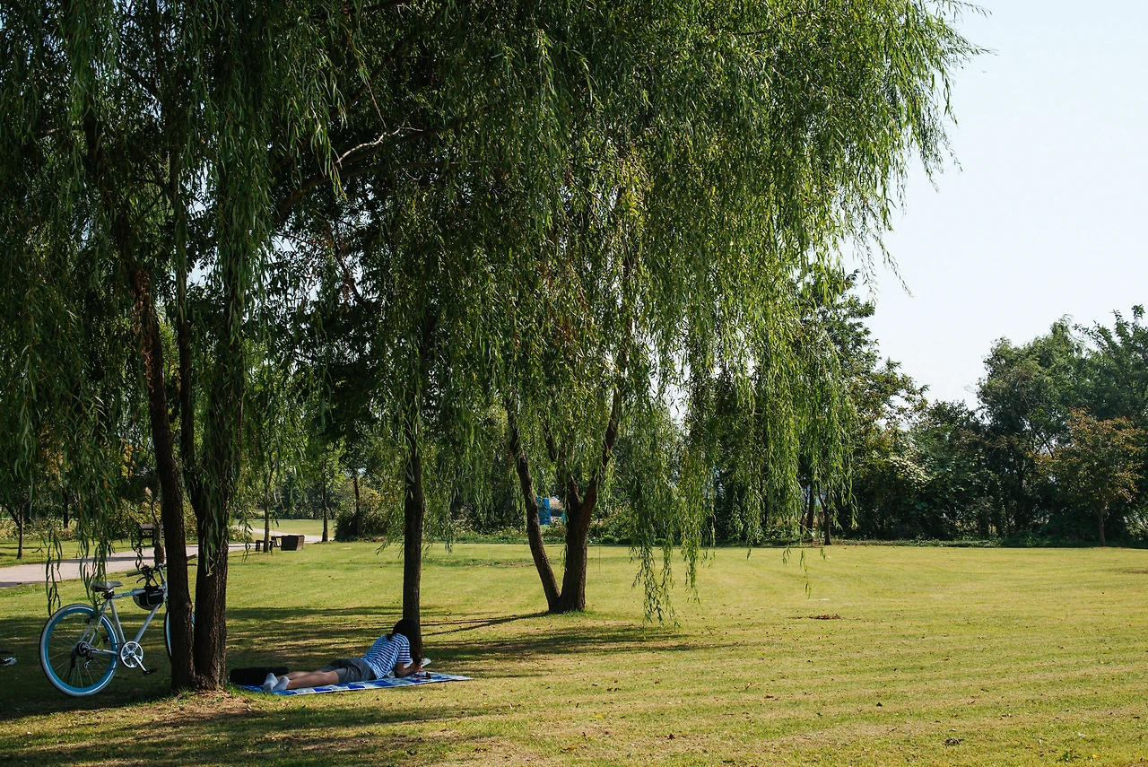 돗자리를 챙겨 나와 나무 그늘 아래서 책을 읽는 분의 모습을 본 후로 저도 종종 라이딩의 목적지가 생겼습니다. 가까운 한강공원에서 캠핑 체어를 펴고 앉아 책을 읽으며 간식을 먹는 도전(?) 말이죠. 가만히 앉아있는 것은 성격상 맞지 않지만 몇 번 하다 보니 혼자 즐거울 방법이 꽤나 많구나 싶습니다.