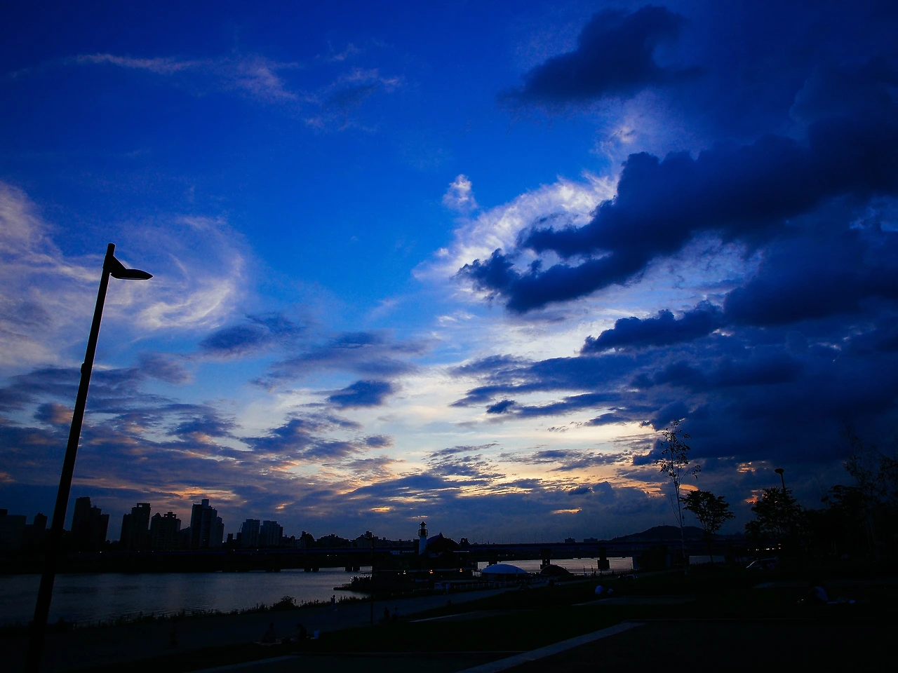 가장 기억에 남았던 남색은 여름이 끝나가던 어느 날 한강변 노을을 삼키던 하늘의 색이었습니다. 평소 같았으면 화려한 노을 색을 가린 이 하늘이 원망스러웠지만 완벽하게 검푸른 이 하늘이 오히려 너무 새로워서 기억에 남았거든요. 이전까지는 남색은 검은색과 진배없는 어둠의 색으로 생각했는데, 이 날 생각이 크게 바뀌었습니다. 이 어두운 실루엣에서도 충분히 섬세한 것들이 그려질 수 있다는 것을 알게 됐죠.