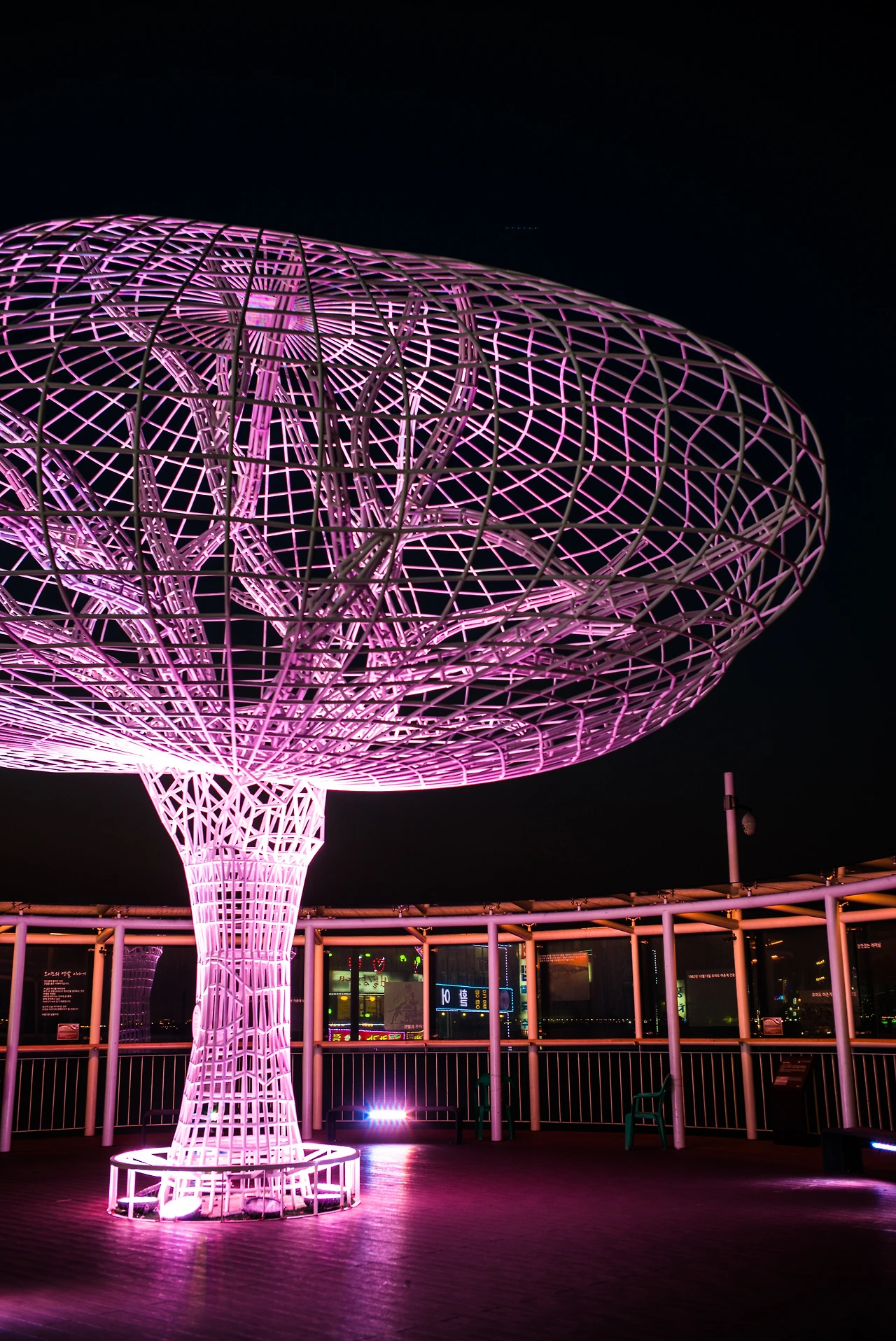 보라색은 참 오묘합니다. 세상의 색 같기도, 아닌 것 같기도 하거든요. 더군다나 자연에서 이 색을 마주하게 되면 기분이 왠지 묘해집니다. 종종 이 색은 비현실 같은 장면에 함께하거든요. 동시에 있기 어려운 파랑과 빨강이 섞인 색인만큼 자주 마주할 수 없습니다. 그래서 사람이 만든 조명이나 조형물에서 주로 찾게 됩니다.