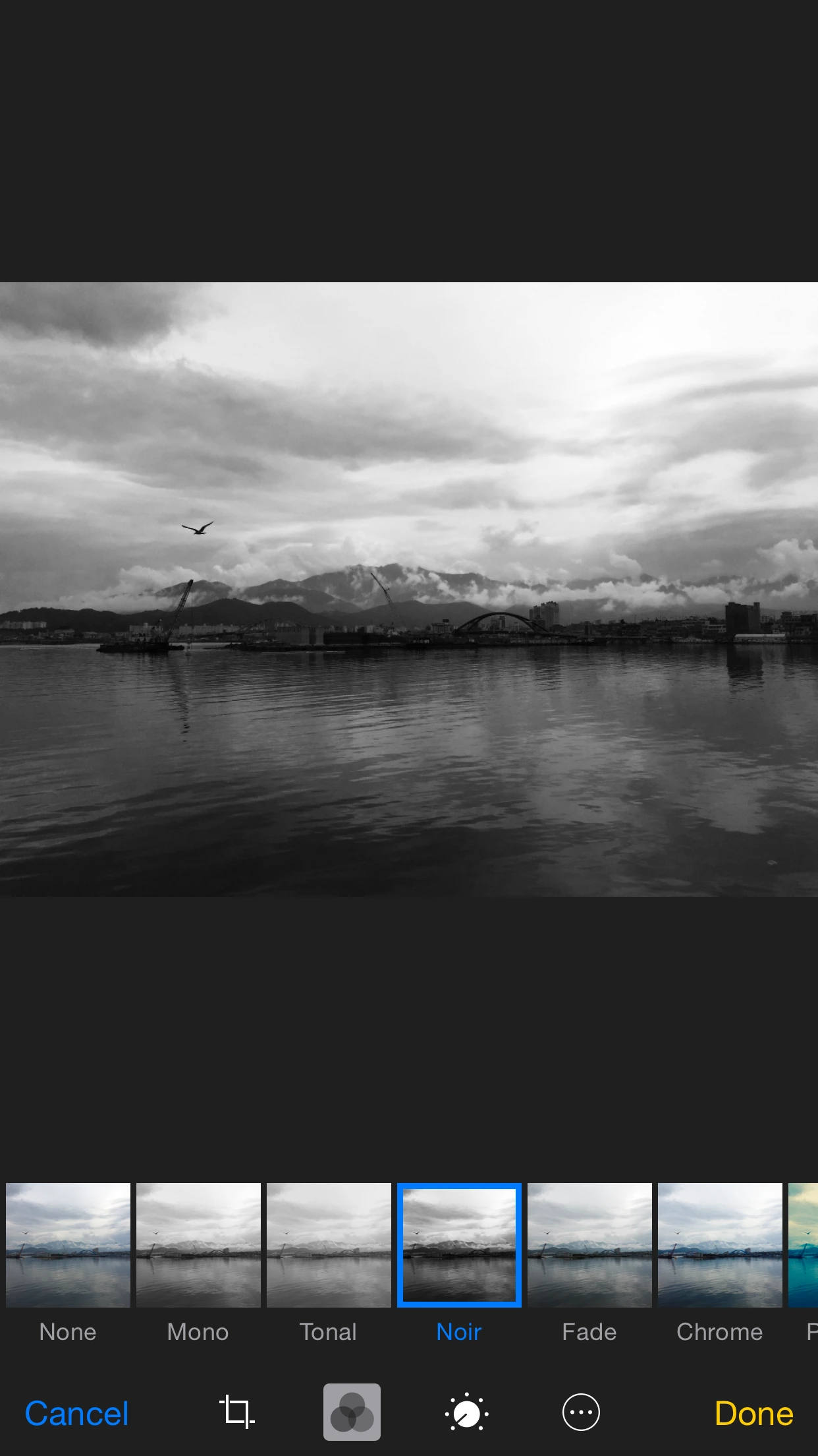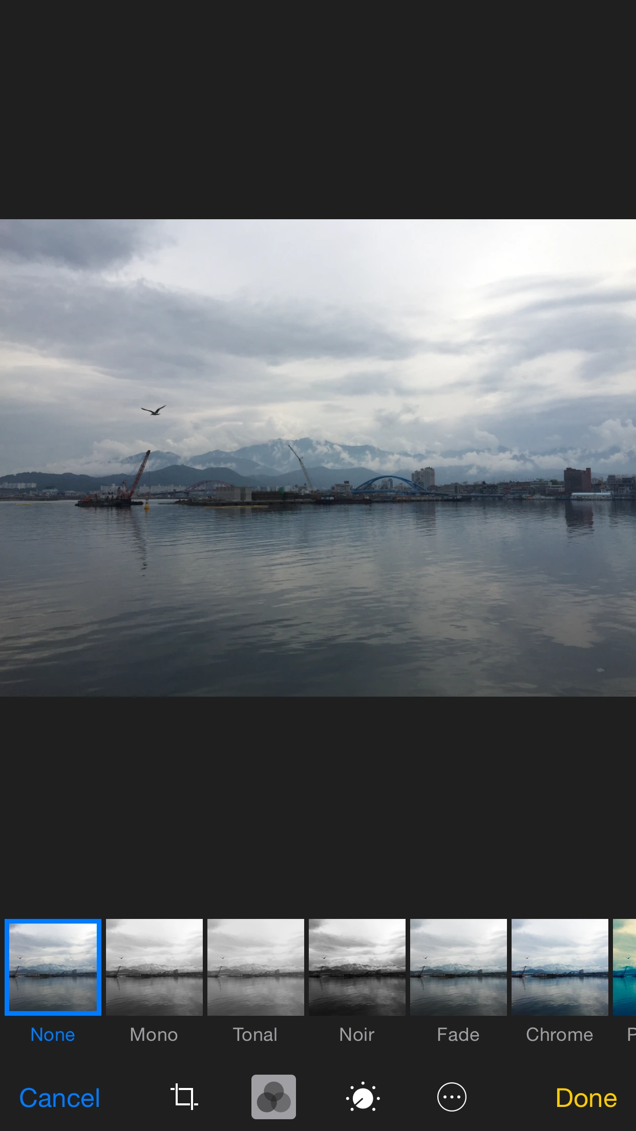 아이폰 기본 카메라에서도 '필터 효과'라는 이름으로 다양한 보정 효과를 지원하고 있죠. 한 번 이 '보정'에 맛들이면 기본 모드로 돌아갈 수 없다고 할 정도로. 각 효과는 매력적입니다. 저는 기본 효과 중 Chrome 필터를 자주 사용하는데, 채도와 대비를 높여 강한 인상을 주죠. -물론 디테일한 표현은 떨어지지만-