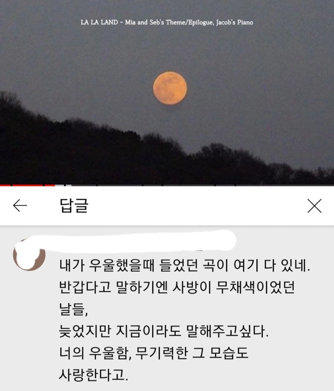 댓글을 보고 눈물이 솟아났다.
