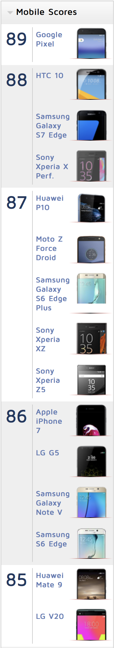 그중에서도 화웨이 P10은 DxOMark Mobile Scores에 최근에 등장함과 동시에 87점인 3위에 랭크되면서 구글 픽셀과 삼성 갤럭시 S7 엣지에 이어 놀라운 모습을 보여주고 있다. 형님뻘의 전작인 화웨이 P9이 라이카와 협업으로 적용한 듀얼카메라가 의외로 선전하지 못한데 대한 설욕이라고 해야 할까?