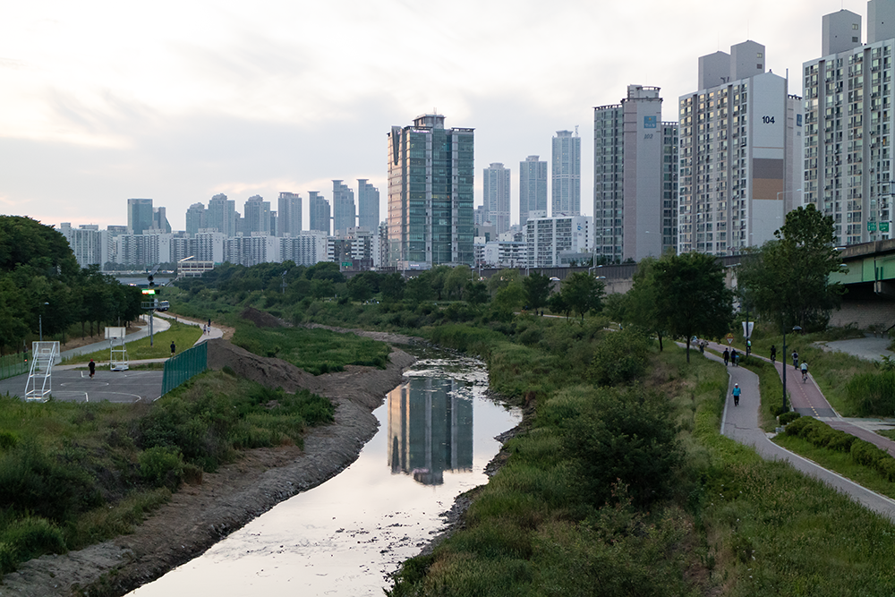 산책을 하다가 만난 하천에 비친 반영도 있을 것이다.