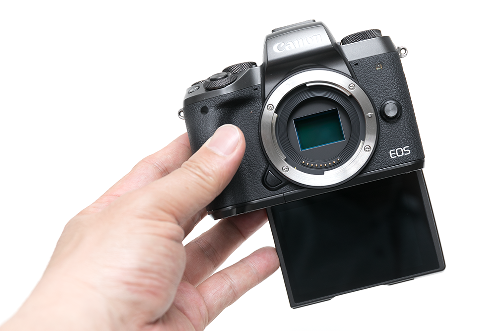 후면의 LCD 모니터 역시 마찬가지다. 약 162만 화소의 TFT 컬러 LCD는 캐논 최고의 플래그십 DSLR 카메라인 EOS 1D X Mark 2와 동일한 것이다. 여기에 위로는 약 85도, 아래로 약 180도의 틸트 조작이 가능하여 촬영자가 원하는 다양한 앵글의 구현이 가능하다.
