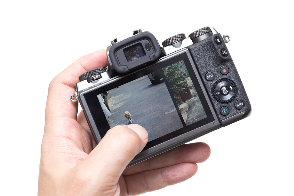 여기에 캐논 EOS M5는 기존 제품과는 다르게 전자식 뷰파인더인 EVF를 제공한다. 그렇다면 EVF가 터치 LCD와 만난다면 어떻게 될까? 렌즈를 통해 들어오는 빛, 광축의 연직선상에 배치된 EVF는 약 100%의 시야율과 약 236만 화소의 OLED를 통해 눈 앞에 보이는 그대로의 선명한 풍경을 선사한다. EVF를 통해 풍경을 관찰하는 동안 터치 LCD는 사용자가 임의로 AF 포인트를 조절할 수 있는 역할을 한다.