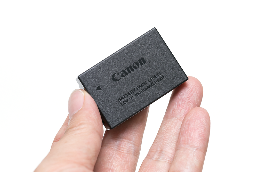 전용 배터리 LP-E17은 캐논 미러리스 카메라 EOS M5, M6 등에서 동일하게 적용되는 것으로 일반적인 상황에서는 하루 정도 충분한 촬영이 가능하다. 하지만 정품 등록 이벤트 등을 통해서 여분의 배터리를 준비해 두면 여행지에서도 만족스러운 촬영이 가능하다.
