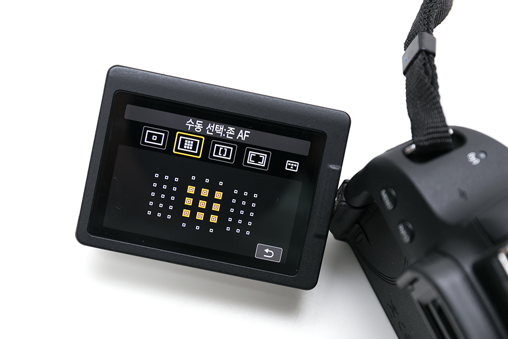 뷰파인더가 익숙하지 않다면 후면의 스위블 LCD를 활용하는 것도 한 방법이다. 앞서 언급한 4가지 AF 영역을 선택할 수 있는데 각각의 AF 영역 선택 모드에 대한 특징은 다음과 같다.