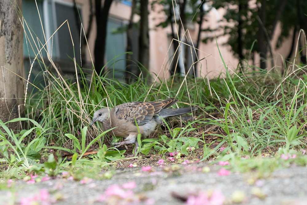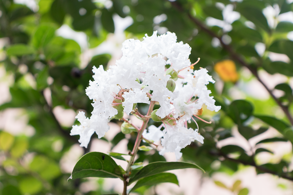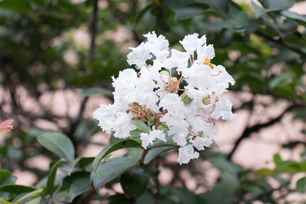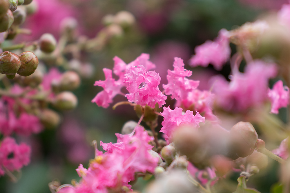 번들렌즈인 EF-S 18-55mm f/4-5.6 IS STM의 55mm 구간으로 눈높이에서 확대해서 담는 것도 좋지만 바닥에 떨어진 배롱나무 꽃의 느낌을 다르게 살려보는 것은 어떨까?