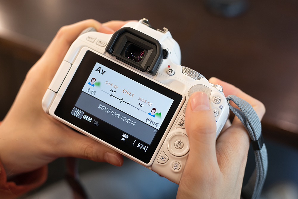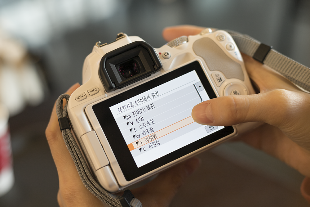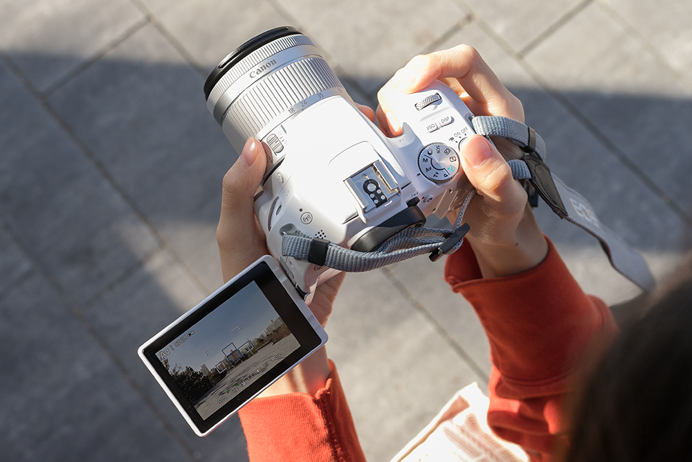 상황에서도 상당히 자유로울 수 있으며 셀카에도 최적화된 모습을 보여주는 캐논 DSLR 카메라