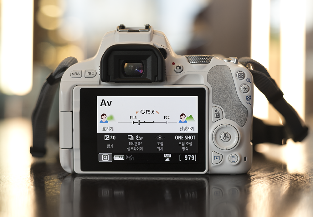 이때 필요한 조작은 앞서 언급한 터치 외에도 우측의 버튼부를 통해 기본적인 조작은 대부분 가능하고 촬영중에도 보지 않고 주요 설정이 가능하도록 추가된 버튼은 보급형이라고 믿겨지지 않는 부분들도 엿볼수 있습니다. DSLR에 입문한 사용자들의 경우는 주로 터치로 조작을 할 것이고 어느 정도 익숙해진 사용자라면 각각의 버튼으로 준중급기를 넘보는 엔트리를 확인할 수 있습니다.