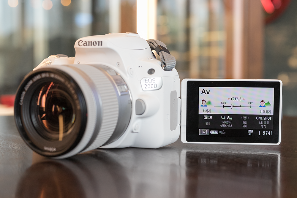 캐논 EOS 200D 화이트의 회전형 스위블 터치 LCD는 상당히 큰 장점으로 작용합니다. 여느 DSLR 카메라와 마찬가지로 LCD를 제공하면서 스마트폰과 같은 풀 터치를 지원하고 있는데요. 여기에 어느 방향에서나 다양한 화각을 연출할 수 있는 회전형 스위블 LCD가 강점인 제품이죠. 전작보다 작고 가벼워진 것도 놀라운 일이지만 회전형 스위블 터치 LCD까지 적용된 점은 캐논 EOS 200D의 확실한 업그레이드 포인트입니다.