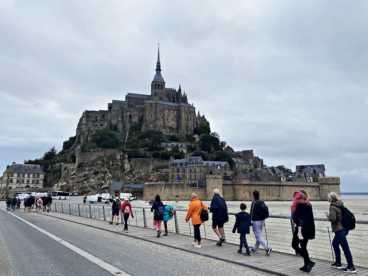 일몰과 일출을 편하게 감상하기 위해 몽 생 미셸과 최대한 가까운 호텔로 예약했다. 호텔만 있는 섹션에는(2km 이내) 투숙객만 차를 가지고 들어갈 수 있고 주차장은 2.5km 정도에서 무료셔틀버스로 들어갈 수 있다. 사진을 볼 때마다 가보기를 열망했던 장면을 언제든지 걸어갈 수 있는 거리에 두니 프랑스가 다 내 것인 것처럼 뿌듯했다.