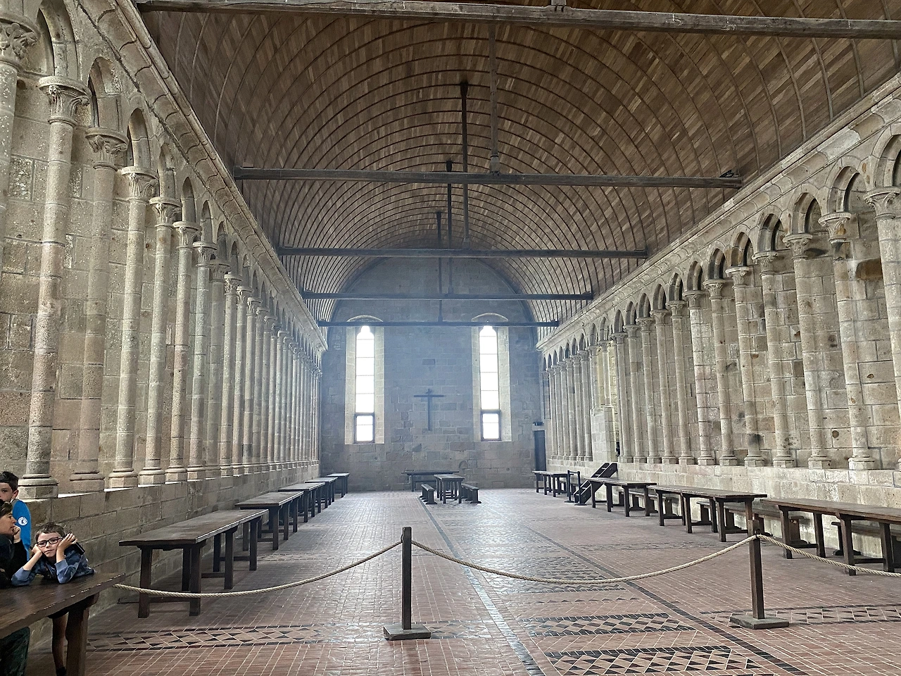 수도원 성당은 처음에 로마네스크 양식이었으나 백년전쟁 때 파괴되어 고딕양식으로 재건되었다. 성당과 식당은 예상보다 굉장히 넓고 고풍스럽다. 수도사들의 기도와 묵상을 위한 공간인 수도원 회랑(성직자의 뜰)은 수도원에서 가장 아름다운 곳으로 초록 잔디가 깔려있어 편안한 느낌을 준다. 수도사들의 작업실이자 연구실이었던 기사(Knight’s Hall)의 방은 넓고 고딕양식 천장이 돋보인다. 바위 위에 지어져 비좁을거라 생각했는데 공간이 널찍하고 허술한 면이 보이지 않아 좀 놀라웠다.