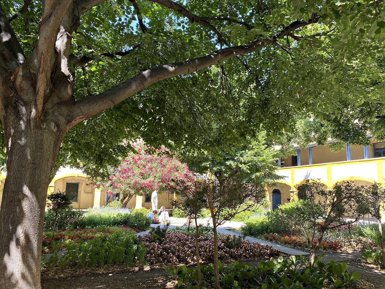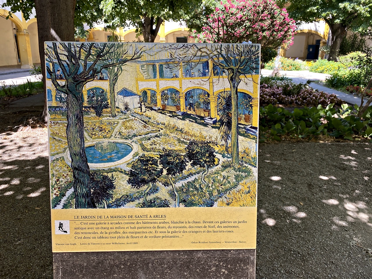 에스파스 반고흐(l'Eapace van Gogh)는 고흐가 귀를 자르고 들어갔던 정신병원이었던 곳이다. 현재는 고흐와 관련된 종합문화센터로 운영되고 있으며 전시관, 도서관 등이 있다. 고흐 작품 <아를 요양원의 정원, 1889>의 모습을 토대로 고흐가 치료받던 당시의 병원과 정원을 복원해 놓아 익숙한 곳처럼 정감이 간다. 정원의 화초와 노란 아치 기둥이 눈에 띈다. 고흐 그림대로 각을 잡아 사진을 찍어보니 재밌다. 정원을 걸어보고 고흐에 관한 수많은 엽서 구경하며 고흐의 영향력이 엄청나다는 걸 느낀다.
