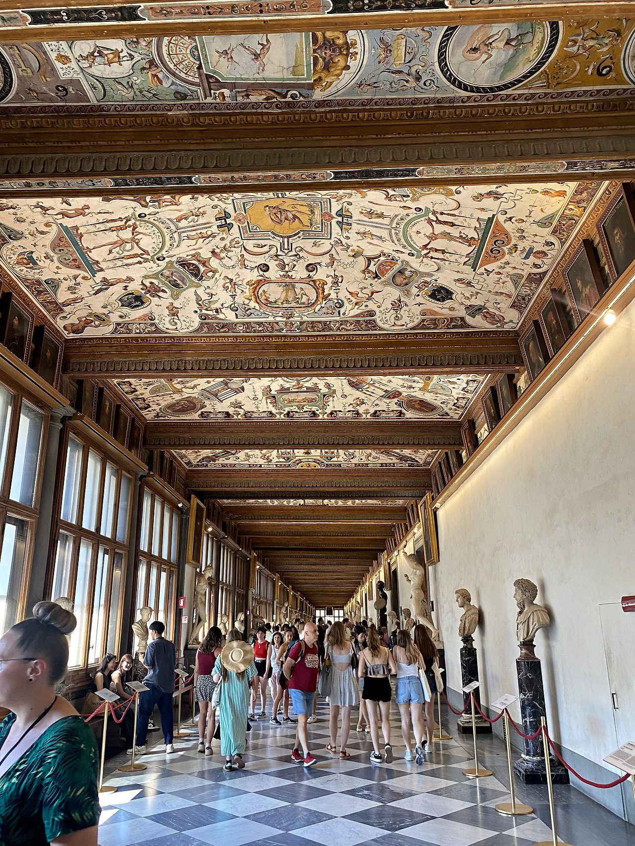 피렌체에서 가이드 투어가 필수라기에 반일 투어(우피치 미술관과 주변 투어)에 참여했다. 시뇨리아 광장에서 피렌체에서 미술을 전공했다는 가이드를 만났다. 미술관 입장은 입장 시간이 시간별로 정해져 있어도 줄이 굉장히 길었고 대기했다 들어갔다. 관람객이 매우 많아 사진을 정면에서 찍지 못한 점이 아쉽다.