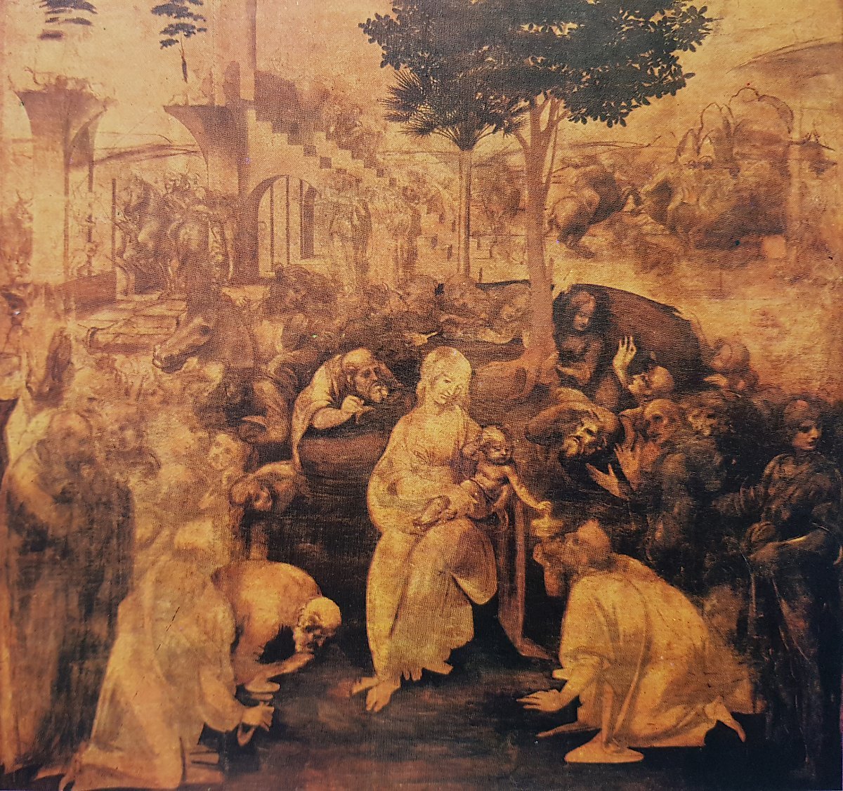 7. 레오나르도 다빈치의 동방박사의 경배 (Adoration of the Magi)이다. ‘모나리자’, ‘최후의 만찬’과 더불어 레오나르도의 3대 걸작이다. 스승 베로키오에게서 독립한 후 그린 최초의 대작으로 누르스름한 갈색만으로 그려진 미완성 작품이다. 배경에는 베들레헴 마굿간 대신 페허가 된 석조건물을 그리고, 일반적으로 다른 화가들이 그려왔던 동방박사들의 경배와는 달리 많은 인물을 그려 넣었다. 다빈치가 이 그림을 주문한 수도원에 석 달 안에 완성하겠다고 약속했지만 피렌체에서 밀라노로 쫓겨나면서 끝내 약속을 지키지 못했다. 다빈치 회화는 완성작이 별로 없어서 우피치 미술관의 2점, 수태고지와 동방박사의 경배는 귀한 작품들이다.
